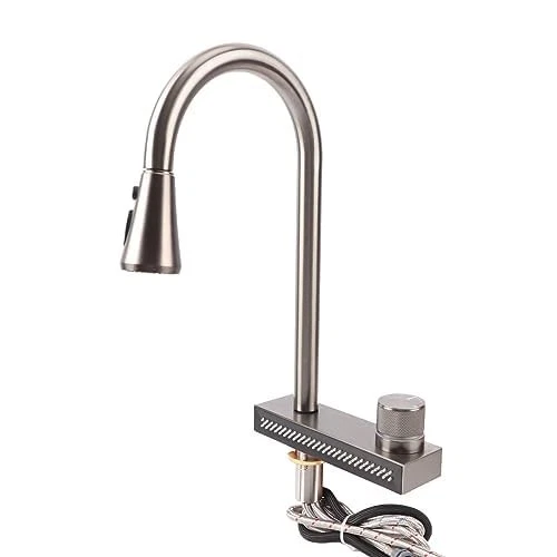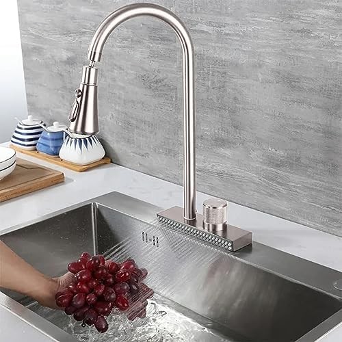Specification: Item Type: Waterfall Faucet Faucet Interface: G1/2 Water Pipe Interface: G1/2 Material: Stainless Steel Weight: Approx. 2470 g / 87.1 oz Package List: 1 x Faucet 1 x Ball 1 x Manual STAINLESS STEEL:The main material of kitchen faucet is stainless steel, which has the characteristic of prevention and long service life. Stainless steel faucet not only looks stylish, but also not easy to rust, can keep shining like new for a long time, creating an elegant and kitchen for you.Faucet Interface: G1/2; Water Pipe Interface: G1/2. MULTIPLE WATER OUTLETS:This kitchen faucet has multiple water outlet options, including a waterfall spout and three other water outlet options on the nozzle. Whether you need a soft of water or a strong of water, this faucet will meet your needs and bring convenience and variety to your kitchen work. EASY CLEANING AND MAINTENANCE:This faucet has a protective coating on the surface, which makes it very easy to use. Just gently wipe with a cloth, you can easily clean to keep the faucet's bright appearance. Save time and effort, keep your kitchen always neat and fresh. MULTIFUNCTIONAL PULL:The pull-out waterfall faucet is a multifunctional design that can meet a variety of different needs. Whether you are washing vegetables and fruits, or cleaning the stove, this faucet provides sufficient water and flexible operation, making your kitchen work more convenient and efficient. ENHANCED USE EXPERIENCE:This faucet is an ideal replacement for old and damaged parts. If your faucet is old or malfunctioning, replacing it with this faucet will bring you a better cooking and using experience.
