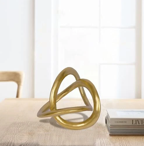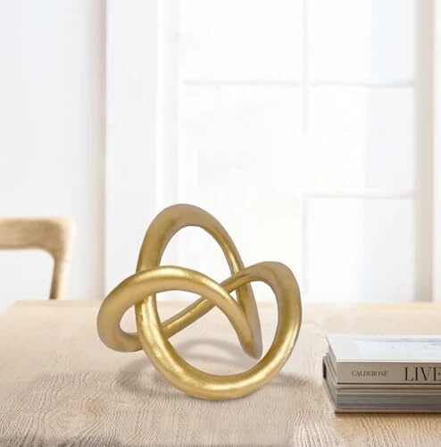 Return Policy Fast Delivery Trusted seller Modern Geometric Round Sculpture Gold Knot Statue Decor Tabletop Sculpture and Figurines Round Decorative Ornaments Knick Knacks Home Decor for Shelves Coffee Table Bookshelf Decoration Gifts Product Description The knot sculpture is crafted with dimensions of 6.5 inches in length, 5 inches in width, and 6.2 inches in height. The golden geometric sculpture is made of high-quality resin, boasting a sleek surface that is easy to clean and resistant to fading. Its durability ensures that it will stand the test of time. This eye-catching modern geometric decor is a perfect addition to any space. The gold knot statue showcases a unique geometric aesthetic and can be placed at different angles, allowing for endless display possibilities. Whether it's the living room, coffee table, bedroom, fireplace, bathroom, TV cabinet, bedside table, mantel, table, or bookshelf, this piece surely enhances your decor. The gold geometric sculpture draws inspiration from the Möbius strip. This geometric sculpture possesses a multitude of fascinating mathematical and physical attributes. This gold cube sculpture presents a thought-provoking exploration of three-dimensional space, captivating viewers with its visual dislocation structure. The presence of this entity enhances our comprehension of the intricacies of space and shape. [OUR PROMISE] We will offer a prompt refund if you are dissatisfied with the geometric sculpture Shipping Returns Payment Shipping Shipping is FREE to all addresses other than APO/PO boxes in the lower 48 states. All our stock ships from US-based warehouses. Shipped via USPS or UPS (depending on location and package weight) Unless stated otherwise, all orders will ship within 24-72 hours of your payment being processed. Check our feedback to see the great reviews of FAST shipping we offer. Returns Seller does not accept returns Payment We currently accept payment via eBay managed payments only. Once payment is cleared, we will dispatch your shipment within 1-3 business days. Please refer to the "Shipping" tab for more information regarding shipping speed to your destination.