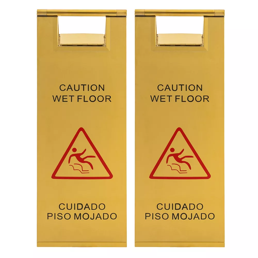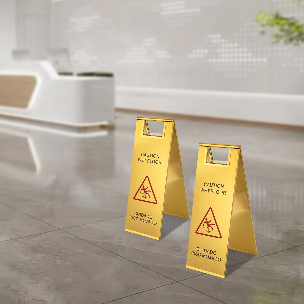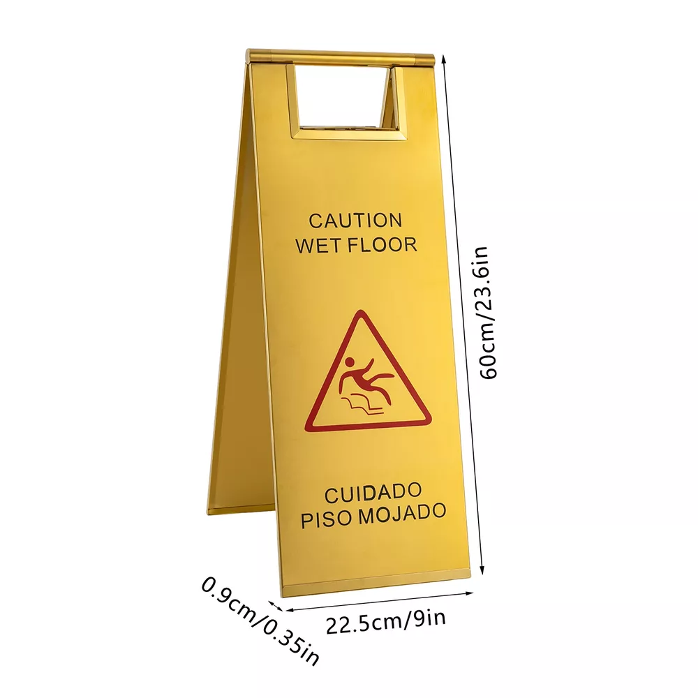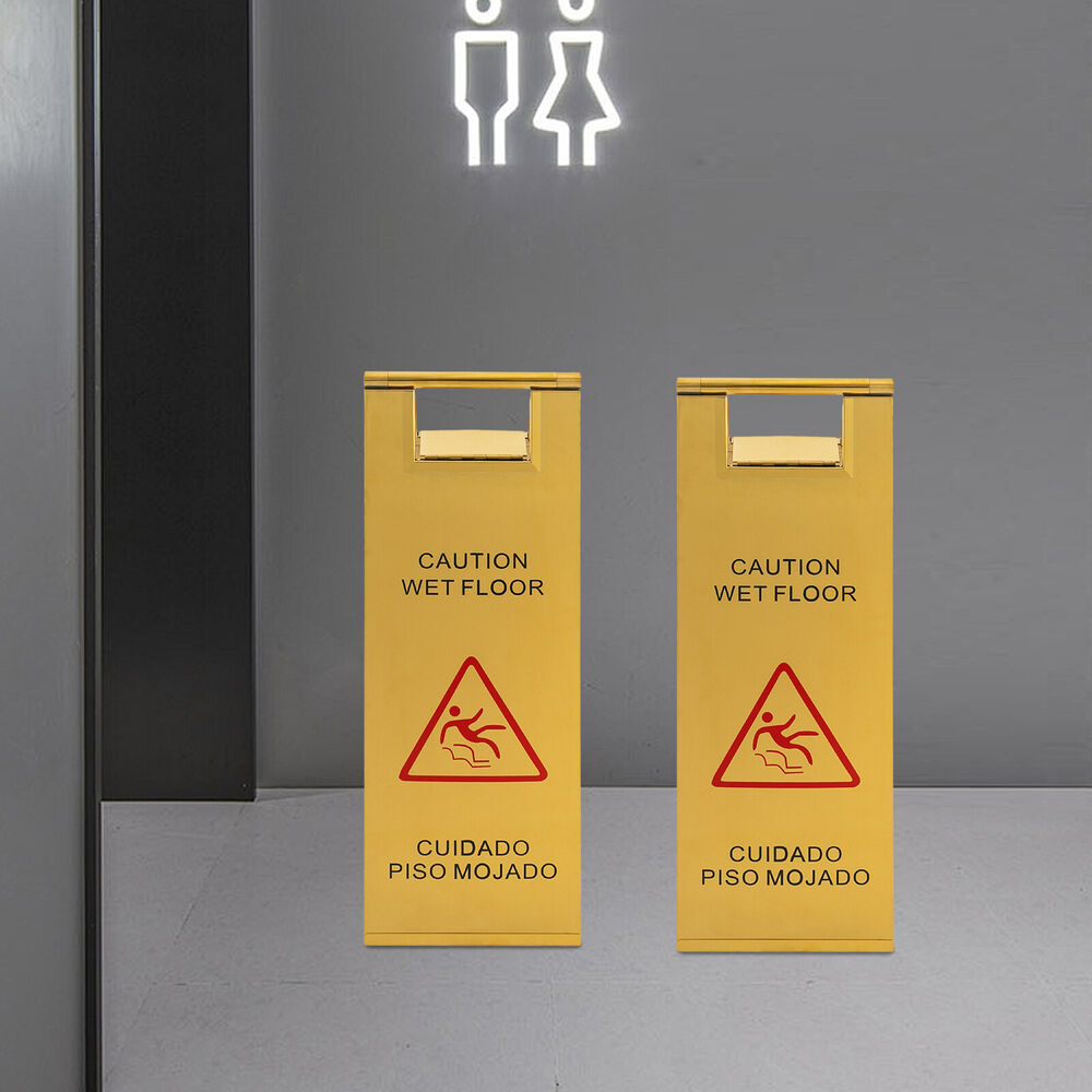 Modern 2 Pcs Stainless Steel Wet Floor Sign Gold Warning Floor Standing Sign NEW Description This wet floor sign is a highly effective tool for alerting visitors and employees to potentially hazardous situations. With its eye-catching colors, patterns, and bold font, it reminds people of the importance of safety in wet locations. With such a warning sign, visitors and employees will consciously comply with the rules and act in strict accordance with the safety standards to ensure their safety. Key Features Sturdy and Durable: This product is made of high-quality stainless steel and plasterboard and adopts the polishing, soldering, and silk-screened processes, which makes the product strong and durable, not easy to fade, so you can use it with confidence. Space-saving: The small size(9*23.6in) and foldable design allow you to store it in a corner, which does not take up too much space. Good Stability: The overall A-shape structure, reasonable angle, and snap structure make the product stable and not easy to tip over. Strong Warning: The eye-catching gold exterior, black lettering, and red icon attract attention and serve as a good warning, effectively preventing slip and fall injuries and reducing lawsuits and workers' compensation claims. Bilingual Design: This product is printed on the exterior in both English and Spanish, which makes it easy for you to use. A Set of Two: This product includes a total of 2 floor signs, which is enough for you to use. You can order more to meet your enlarged needs. Installation-free: The all-in-one design of this product allows you to use it as soon as you receive it without additional installation. Effortless Clean: With its simple construction and smooth surface, you can simply rinse it with water or wipe off surface dust with a damp rag. Customer Service: We aim to provide quality products and services. If you have any problems, please feel free to contact us. We will reply and solve the problem for you as soon as possible. Details Smooth Edges: They not only enhance the aesthetics of the product but also improve safety during use. Portable Handle: The top carrying handle makes it easy for you to hold and carry this product. Snap-on Design: It can easily unfold and fold the product, not easy to damage. Application It is suitable for indoor and outdoor places such as restaurants, schools, grocery shops, retail shops, shops, malls, cinemas, offices, doorways, walkways, and outdoor passageways. It can effectively warn people to avoid slips and falls. Specification Material: Stainless Steel, Plasterboards Color: Gold Process: Polished, Soldered, Silk-screened Shape: Rectangle Mounting Type: Floor Standing Style: Modern Assembly Required: No Number of Pieces: 2 Product Size(W*H): 22.5*60cm/9*23.6in Thickness: 0.9cm/0.35in Gross Weight: 8.2kg/18.1lbs Net Weight: 7.6kg/16.8lbs Package Size: 61*45*22.5cm/24.02*17.72*8.86in Package Included 2* Wet Floor Signs Notes Please allow the slight color difference caused by the shooting light and the 1-3 cm error due to manual measurement, and make sure you do not mind before ordering. Payment Delivery details Terms of sales About us Contact us Payment We accept ebay payment 。 Fees such as import duties, taxes are not included in the item price or shipping costs. These charges are the buyer's responsibility. Delivery details Shipping: 2-9 working days to: USA Terms of sales We maintain high standards of excellence and strive for hundred percent customer satisfaction. Feedback is very important to us. We hope that you contact us immediately before you give neutral or negative feedback, so that we can address your concerns. It is impossible to address issues if we do not know about them! About us Your satis faction is our ultimate goal. We work hard to earn your trust and future business. Our certified technicians have tested each item before shipping. The unit comes with 1 year limited warranty on all manufacturing defects. a) If you receive a defective item, you may return it or ask for a discount. Please contact us within 14 days after you receive the package. b) What you returned must be intact and in its original packaging as re? u. Customer is responsible for shipping costs of the returned item. c) We will cover the cost of shipping back t with the shipping rate indicated in the registration page. We will send you a new unit or refund the full payment you paid. Thank you. Contact us Business Hour Business Hour: Monday To Friday: 8:30 AM to 5:00 PM (Beijing China time) Due to time zones, our reply to your questions may not be immediately. But within above working time, we will reply your email within 24 hours. If it's non-workdays, please kindly be patient and wait till Monday. Please contact us with ebay message. Please feel free to contact us if you have any questions. Monday To Friday: 8:30 AM to 5:00 PM (Beijing China time) Due to time zones, our reply to your questions may not be immediately. But within above working time, we will reply your email within 24 hours. If it's non-workdays, please kindly be patient and wait till Monday. Please contact us with ebay message. Please feel free to contact us if you have any questions. On Feb 13, 2025 at 18:12:17 PST, seller added the following information: