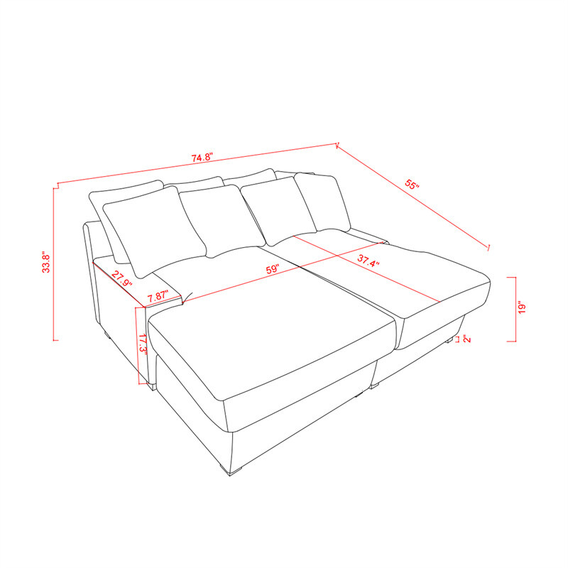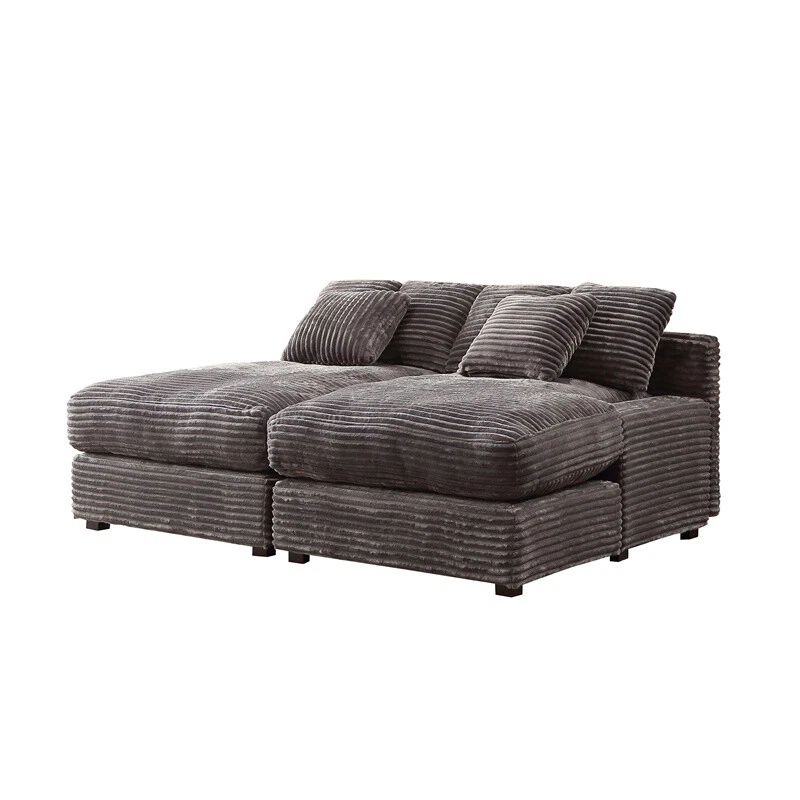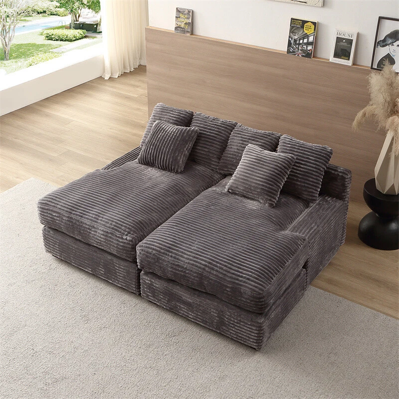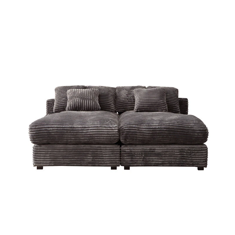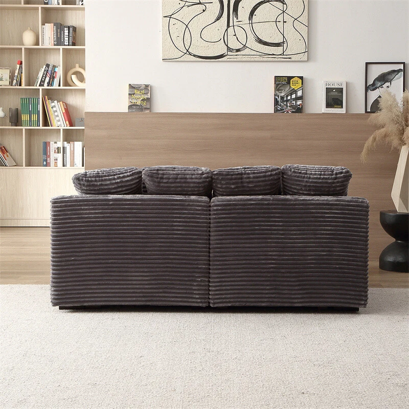 Specification Product Information Product Type:Combo Item Product Name:74.8" Modern Luxury Twins Sofa Couch for Living Room Quality Corduroy Upholstery Sleeper Sofa Bed Daybed Grey Main Color:Grey Main Material:Corduroy Seats:2 Seat Product Dimensions Assembled Length (in.):Not Applicable Assembled Width (in.):Not Applicable Assembled Height (in.):Not Applicable Weight (lbs.):Not Applicable Package Size Sub-item 1: Package Quantity: 1 51.57 * 36.6 * 18.11 in. 88 lbs. Sub-item 2: Package Quantity: 1 51.57 * 36.6 * 18.11 in. 88 lbs. Product Features STURDY STRUCTURE: The product frame is made of solid wood with plywood and spring support, which is sturdy and durable, so you won't have to worry about frequently replacing sofas. Featuring square armrests and removable cushioned backrests, it creates a stylish appearance. COMFORTABLE: Adequate polyester fiber filling is wrapped in soft corduroy, and its plush and fluffy design makes it different from other seat cushions. Its thickness and fluffiness create a more indulgent and comfortable seating experience. Sitting on it is like being wrapped in clouds, allowing your exhausted body to relax endlessly after a day of exhaustion. VACUUM COMPRESSION: Our high-quality seat cushion material can be fully restored to its shape after compression, and you can tap the seat cushion to accelerate the recovery. MULTIPURPOSE: This sofa can be used as a daybed in the living room or as a lounge sofa in the bedroom. Its design can accommodate two people, it’s suitable for guests to have a good rest temporary. ASSEMBLY: This sofa needs to be assembled, it is very simple, and all the tools and instructions are included in the package. DIMENSION: W74.8 "x D55" x H33.8 ",Weight Capacity:700lbs Description Product Details Product Type Daybed / Sofa Bed Overall Dimension W74.8 "x D55" x H33.8 " Overall Product Weight 154lbs Number of combined pieces 2 Seating Capacity 2 Upholstery Material Corduroy Seat Cushion Fill Material Polyester Back Cushion Fill Material Polyester Frame Material Solid Wood+Plywood+Spring Wood species Eucalyptus Leg Material Solid Wood(Rubber wood) Leg Color Dark brown Seat Construction Sinuous Springs+foam Foam Density 1.7lbs./cu.ft. Arm Type Square arm Toss Pillows Yes Removable Cushion Cover Yes Reversible Cushions No Storage No Weight Capacity 700lbs each seat