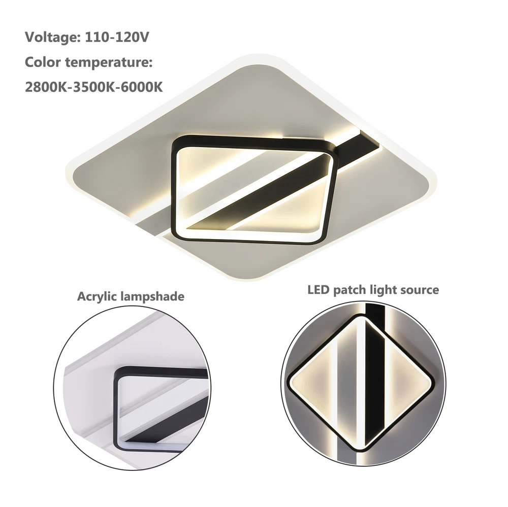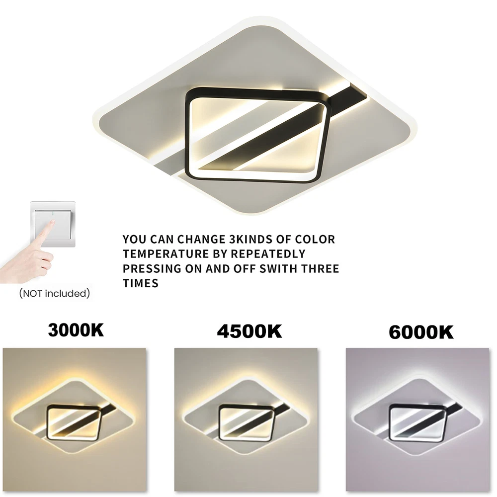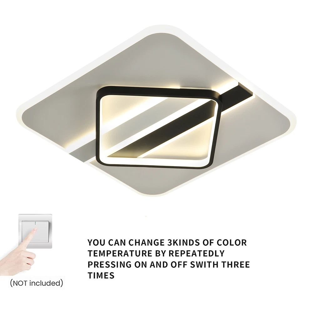 Application It is ideal for hallway, entry, porch, mudroom, stairwell, kitchen, closet, kid's room, dining room, bedroom, and living room, also ideal for commercial areas, such as bar, cafe, hotel, and restaurant. It fits a space of 107.64-215.28ft2. Specification Model: 8004 Shape: Square Style: Modern Material: Iron, Aluminum Color: Black, White Process: Baking Paint Assembly Required: Yes Plug Standard: US Standard Indoor/Outdoor Usage: Indoor Light Fixture Form: Close to Ceiling Control Mode: Wall Switch (Not Included) Voltage: 110V Three Color Changing Light: White 6000k, Neutral 3500k, Warm 2800k Light Source: LED (85W, Included) Illuminated Area: 10㎡ -20㎡/107.64-215.28ft2 Product Size: 49*49*7cm/ 19.29*19.29*2.75 in Package Included 1 * Modern Ceiling Light 1 * English Manual Modern LED Ceiling Light Flush Mount Ceiling Lamp Chandelier Lighting 3-Color US Modern LED Ceiling Light Flush Mount Ceiling Lamp Chandelier Lighting 3-Color US Description This unique lamp adds a modern and simple style to any room. It blends well with the theme of the room, which increases the beautiful visual appeal that only this kind of light can create. It is not only a lamp but also a beautiful decorative piece. Key Features High-quality Material: This product is made of high-quality iron and aluminum and has a fine-baked finish with high hardness, anti-corrosion, and anti-rust properties. Powerful Lighting: 85W LED light source provides powerful lighting (107.64-215.28 square feet). The invisible strobe makes the light more delicate and comfortable without harshness. High color rendering anti-blue LED light will bring brighter and richer colors to your room. Three Color Changing Light: Three colors of light (white 6000k, neutral 3500k, warm 2800k) with high color rendering bring you a variety of lighting atmosphere. You can use the wall switch to adjust the color temperature at will. Energy Saving: High-quality energy-saving LED lights are up to 85% more energy efficient than halogen lights. It consumes less electricity but has a high brightness output, saving your electricity bill. Stylish Appearance: The elegant ceiling light impresses with its classic color scheme and stylish appearance, making it an eye-catcher in both the living room and bedroom. Its charming modern style can match most styles of furniture and add a beautiful accent to your home. Easy to Install: Once your wiring is ready, its simple construction design and the English manual included in the product package allow for a quick and easy installation. Ideal Gift: This product is stylish and high-quality and can be used as a gift for parents, friends, and loved ones, or as a housewarming, birthday, and holiday gift. Details Thin Design: With a thickness of only 2.75 inches, the product is mounted close to the ceiling, making it less likely to accumulate dust and easier to clean. Hidden Wires: The product is free of exposed wires, resulting in a more attractive appearance and safer use. Application It is ideal for hallway, entry, porch, mudroom, stairwell, kitchen, closet, kid's room, dining room, bedroom, and living room, also ideal for commercial areas, such as bar, cafe, hotel, and restaurant. It fits a space of 107.64-215.28ft2. Specification Model: 8004 Shape: Square Style: Modern Material: Iron, Aluminum Color: Black, White Process: Baking Paint Assembly Required: Yes Plug Standard: US Standard Indoor/Outdoor Usage: Indoor Light Fixture Form: Close to Ceiling Control Mode: Wall Switch (Not Included) Voltage: 110V Three Color Changing Light: White 6000k, Neutral 3500k, Warm 2800k Light Source: LED (85W, Included) Illuminated Area: 10㎡ -20㎡/107.64-215.28ft2 Product Size: 49*49*7cm/ 19.29*19.29*2.75 in Package Included 1 * Modern Ceiling Light 1 * English Manual All Accessories for Installation Notes 1.This product is not waterproof, please install it in a dry environment. 2.Please disconnect the power and wipe with a soft, dry cloth before cleaning the shade or fixture. 3.Please make sure that the roof and floor construction is completed and there is free of leakage before the installation of the luminaire; the plastering of the roof and walls and the cleaning of the ground have been completed. 4.If the installation location of the product is fragile materials (marble, tile, glass, ceramic, etc.), you need to explain to the installer in advance, so as to determine whether professional drilling tools are required. 5.Products with electrical plugs are designed for use in the US. Please check compatibility before purchasing. 6.Please read the operating manual completely before use. And pay particular attention to the safety instructions included. 7.Please allow the slight color difference caused by the shooting light and the 1-3 cm error due to manual measurement, and make sure you do not mind before ordering. Payment Delivery details Terms of sales About us Contact us Payment We accept ebay payment 。 Fees such as import duties, taxes are not included in the item price or shipping costs. These charges are the buyer's responsibility. Delivery details Shipping: 2-9 working days to: USA Terms of sales We maintain high standards of excellence and strive for hundred percent customer satisfaction. Feedback is very important to us. We hope that you contact us immediately before you give neutral or negative feedback, so that we can address your concerns. It is impossible to address issues if we do not know about them! About us Your satis faction is our ultimate goal. We work hard to earn your trust and future business. Our certified technicians have tested each item before shipping. The unit comes with 1 year limited warranty on all manufacturing defects. a) If you receive a defective item, you may return it or ask for a discount. Please contact us within 14 days after you receive the package. b) What you returned must be intact and in its original packaging as re? u. Customer is responsible for shipping costs of the returned item.