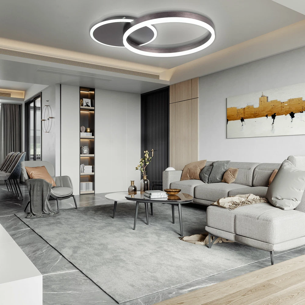 Modern LED Chandelier Round Ceiling Light Dimmable Pedant Lamp Bedroom LED Ceiling Lamp Light 48W Chandelier Dining Living Room Bedroom Home W/Remote About this item ☉【Specifications】 Power: 48W. Light body size: 21.6 * 15.7 * 2.7 inch (55 * 40 * 7cm), Lamp tray: Dia11.8 inch (30cm). ★CEILING LIGHT FUNCTION --- Dimmable with Remote Control.Change Light Color Temperature from 3500K to 6000K and Brightness from Low to High.Anyhow, you can decide the lighting of your room. ★PRODUCT PARAMETERS --- Modern/Contemporary Flush Mount Ceiling Light;Color Temperature: from Warm White (3500K) to Cool White 6000K ; Material: Aluminum and Acrylic;Max 48W;110V-240V. ★SOFT LIGHT --- High Quality And Long Life, Easy To Install,Bright And Soft Light, No Rf Interference, No Noise And No Flickering, You Can Protect Your Eyes And Brains. ★SUIT FOR RESIDENTIAL OR COMMERCIAL-- Perfect Ceiling lights for living room,dining room,kid's room, kitchen,office,coffee shop,restaurant,dress room, shop, etc,Suggested Room Fit: 10-15㎡ ☉【Modern Design】 The geometric LED ceiling light consists of two layers of rings, bigger one is a 15.7-inch hollow circle, smaller is a 11.8-inch solid circle. The acrylic surrounds the ceiling plate and looks special when the light is turned on. ☉【LED light source】 High-quality LED light source, high efficiency, low energy consumption, no flicker. This LED light emits soft white light and will not hurt the eyes. The lifetime of the LED light source exceeds 20,000 hours. ☉【Durable】 This LED ceiling lamps is composed of high-quality aluminum and acrylic, powder sprayed and polished, high temperature resistance, anti-corrosion, anti-fading, anti-scratch, and ensure long life. ☉【Installation】 Easy installation without taking much time. Includes required mounting parts. If you have any questions, please email us and we will reply you as soon as possible. The stylish contemporary led ceiling lighting fixtures, you can install it be kids room ceiling light,bedroom ceiling light, kitchen ceiling light, office ceiling light, hotel ceiling light, living room ceiling light and more... Modern Round LED Ceiling Light Size: Product Size: 21.6x15.7x2.7 inch (55x40x7cm) Lamp tray: Dia11.8 inch (30cm) ► Please confirm the size before ordering. Spectification: Fixture Color: Coffee/Brown Material: Aluminum & Acrylic lampshade Connection method: Hardwire connection Style: Modern/Contemporary ► Reading the instruction before installation will save your installation time. Light source: Built-in non-dimmable LED array. Product Power: 48W Number of Rings: 2 circle rings Output lumens: 4070lm(110lm/W) Voltage: 110-260V Light Source: LED Strips ( Included); Is Dimmable: Yes; Multi color in one lamp from 3500K to 6000K Package Included: 1 LED ceiling light 1 Mounting material 1 Installation Manual ►►This surface mount ceiling light is NON-dimmable. Its LED chip is embedded, so it cannot be replaced. But the service life of LED is very long, almost 50,000 hours. Once the fixture does not work, it is usually a driver problem. Replace the driver to work again. Payment Delivery details Terms of sales About us Contact us Payment We accept ebay payment 。 Fees such as import duties, taxes are not included in the item price or shipping costs. These charges are the buyer's responsibility. Delivery details Shipping: 2-9 working days to: USA Terms of sales We maintain high standards of excellence and strive for hundred percent customer satisfaction. Feedback is very important to us. We hope that you contact us immediately before you give neutral or negative feedback, so that we can address your concerns. It is impossible to address issues if we do not know about them! About us Your satis faction is our ultimate goal. We work hard to earn your trust and future business. Our certified technicians have tested each item before shipping. The unit comes with 1 year limited warranty on all manufacturing defects. a) If you receive a defective item, you may return it or ask for a discount. Please contact us within 14 days after you receive the package. b) What you returned must be intact and in its original packaging as re? u. Customer is responsible for shipping costs of the returned item. c) We will cover the cost of shipping back t with the shipping rate indicated in the registration page. We will send you a new unit or refund the full payment you paid. Thank you. Contact us Business Hour Business Hour: Monday To Friday: 8:30 AM to 5:00 PM (Beijing China time) Due to time zones, our reply to your questions may not be immediately. But within above working time, we will reply your email within 24 hours. If it's non-workdays, please kindly be patient and wait till Monday. Please contact us with ebay message. Please feel free to contact us if you have any questions. Monday To Friday: 8:30 AM to 5:00 PM (Beijing China time) Due to time zones, our reply to your questions may not be immediately. But within above working time, we will reply your email within 24 hours. If it's non-workdays, please kindly be patient and wait till Monday. Please contact us with ebay message. Please feel free to contact us if you have any questions. On Nov 11, 2024 at 19:21:58 PST, seller added the following information: