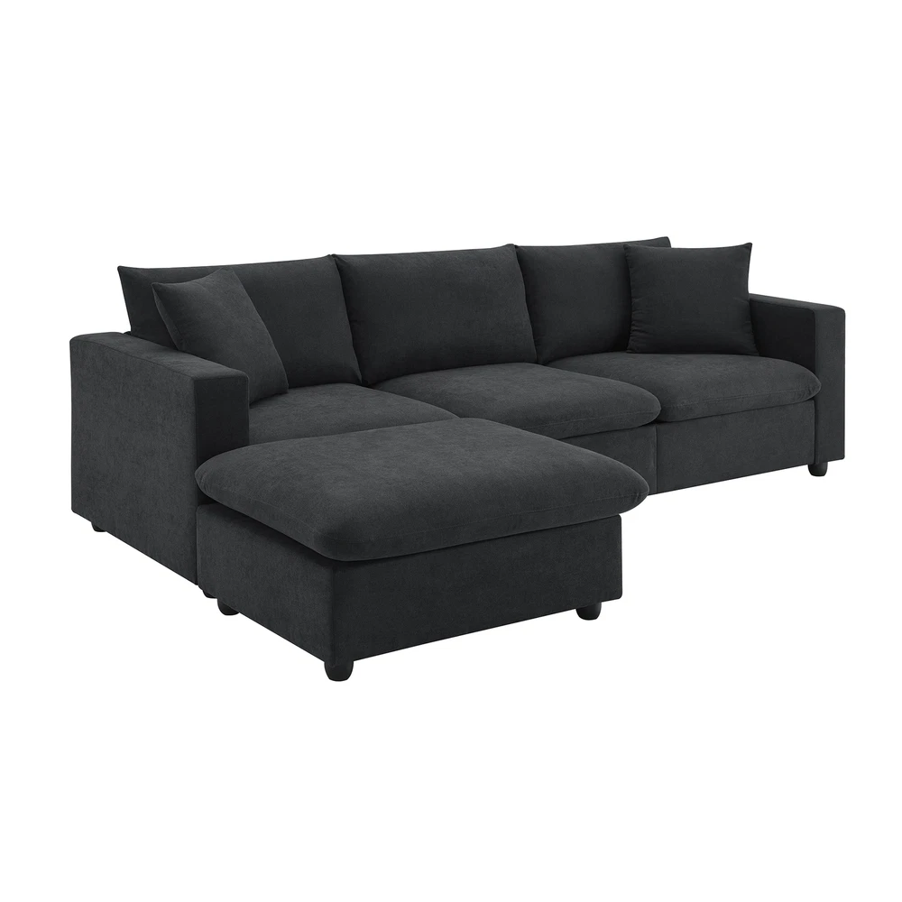 This modern L-shaped sectional sofa is a game-changer! The convertible ottoman adds so much versatility—move it anywhere to create different layouts for lounging or entertaining. Perfect for small spaces yet surprisingly spacious, it offers comfy seating and even doubles as a coffee table. The sturdy iron frame ensures durability, supporting up to 300 lbs. Great style, smart design, and solid quality—love it!