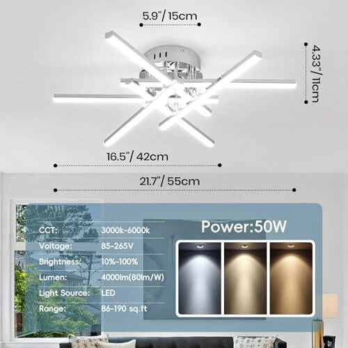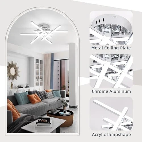Return Policy Fast Delivery Trusted seller Modern Led Ceiling Light,50W Sputnik LED Dimmable Ceiling Light Fixture with Remote Control, Chrome Flush Mount Chandelier Ceiling Lighting for Bedroom Living Room Kitchen Office Ceiling Lamp Product Description MODERN DESIGN - This sputnik modern ceiling light is made of aluminum that does not rust easily and has a stylish design. Chrome finish pinting gives it a modern and sophisticated look, making it the choice for those who want to upgrade their interior design DIMMABLE WITH REMOTE - This modern led ceiling light can control the brightness and color temperature by remote control. Brightness: 10%-100%. Color Temperature: 3000K-6000K. According to your preference, you can adjust it to your liking with the remote control. With memory function and night light mode ENERGY SAVING - Chrome Modern flush mount ceiling light has a built-in new LED chip for better brightness and lower energy consumption, saving energy and electricity costs, with a lifespan of more than 50,000 hours. color rendering index of up to 90, resulting in high color rendering WIDE APPLICATIONS - Brighter than the same type of led ceiling light fixtures , the exquisite decorative led ceiling lamp is suitable for bedroom, living room, kitchen, dining room, office, laundry room,hotel and etcmany scenes, enough to make a stunning CUSTOMER SUPPOR - Our customer's satisfaction is extremely important to us, if you have any questions or comments, don't hesitate to contact us, a quick response and friendly customer service will be t for you Shipping Returns Payment Shipping Shipping is FREE to all addresses other than APO/PO boxes in the lower 48 states. All our stock ships from US-based warehouses. Shipped via USPS or UPS (depending on location and package weight) Unless stated otherwise, all orders will ship within 24-72 hours of your payment being processed. Check our feedback to see the great reviews of FAST shipping we offer. Returns Seller does not accept returns Payment We currently accept payment via eBay managed payments only. Once payment is cleared, we will dispatch your shipment within 1-3 business days. Please refer to the "Shipping" tab for more information regarding shipping speed to your destination.
