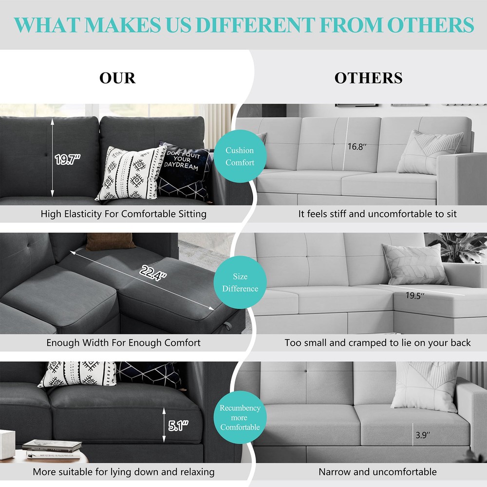 Absolutely love this sofa! The modern linen fabric looks chic and feels super cozy. The spacious L-shape fits my whole family comfortably, and the versatile design works perfect for both movie nights and hosting friends. Super easy to convert into different layouts too—super stylish and practical!