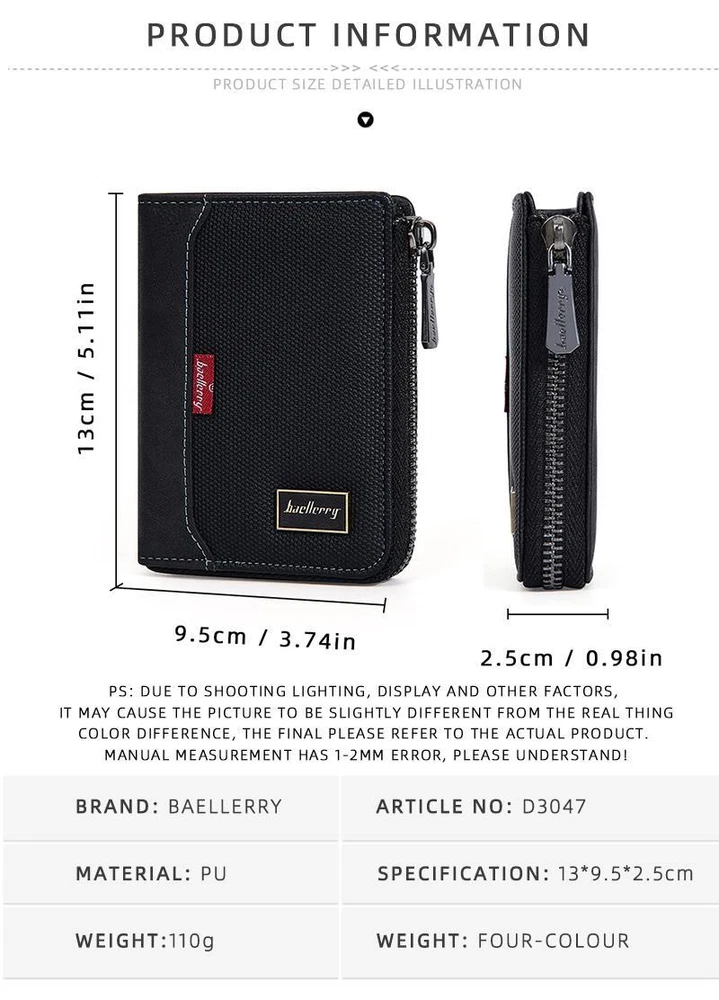Free and fast shipping , shipping take up 1-7 Business Days 30 Day Return Accepted EASY PAYMENT via PayPal, Credit Card, PayPal Credit, Google Pay... Wallet Credit Card Holder Zipper Multicolor Leather Modern Gift Men Small Solid PAYMENT: Before placing your order, please confirm details with us if you have request on product. Please make payment within 3 days of order if possible. SHIPMENT: 1.Preparing Time:we need 2 working days to prepare your order according to our numberous orders every day. 2.Please double check your address when you write in , if you want change before we ship them out, please notice us the new address. 3.We apologize that P.O. Boxes and military addresses (APO, FPO) cannot be delivered. NOTE: If you choose the free shipping option, your parcel will be directly delivered your home only one time or it will send to your local post office then you need to take your tracking number and your personal ID to collect your items.We will inform you immediately once your parcel have been sent out. If you choose shipping, please remember to leave your contact number, this is required for shipping. FEEDBACK: Your satisfication is our goal. Feedback is very important for us. Please kindly offer us a positive feedback if you are satisfied with the item.Thanks for your time to read the above. Happy shopping. REVIEWS The product came very well packaged. I'm very happy. thank you for everything. Seller strongly recommended. This is great! I definitely recommend! Product looks amazing Delivery was fast. Excellent seller, great communication. I advise everyone to buy it!