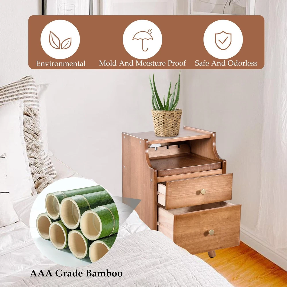 $ 67.67Modern Nightstand Wood Bedside Table 2 Drawers End Side Table For Bedroom