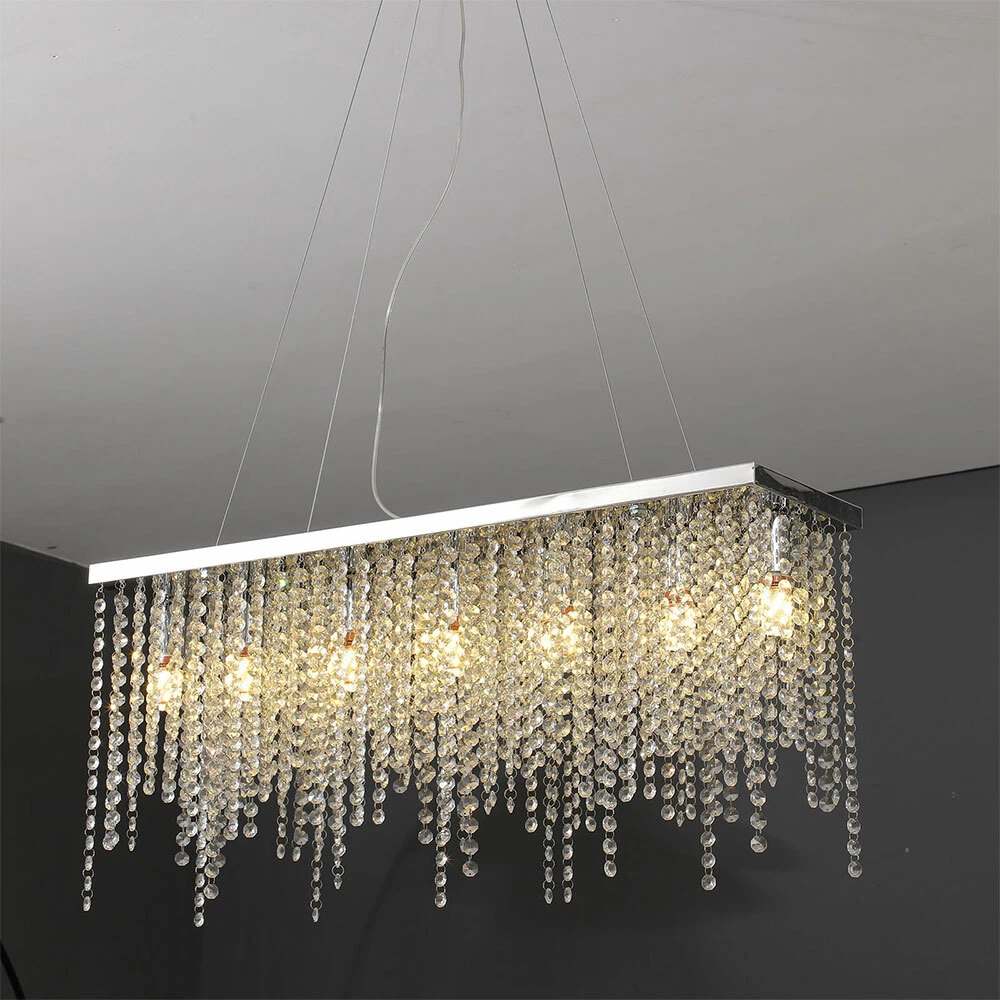 Description: Rain drop collection, sparkles from every angle. Full Assembly Required with time and effort. Feature: Material: Polished chrome stainless steel canopy and frame, top K9 clear crystal Dimension: Length 32" (80cm), Width 8" (20cm), Height 16" (40cm). Pendant wire: adjustable 59"(150cm) Light Source:E12 x 7 Bulbs Required (Max 40W each, NOT included). Works with incandescent, LED, CFL, halogen or color changing bulbs up to 40W. Fully dimmable when used with dimmable bulbs and a compatible dimmer switch (not included). Application: Ideal for living room, dining room, kitchen island, bedroom, foyer, indoor, farmhouse, sloped ceiling, bar, restaurants, galleries, exhibition room, hotel, coffee shop, office. Modern Rectangular Raindrop Crystal Chandelier Light Ceiling Light Pendant Lamp Description: Rain drop collection, sparkles from every angle. Full Assembly Required with time and effort. Feature: Material : Polished chrome stainless steel canopy and frame, top K9 clear crystal Dimension : Length 32" (80cm), Width 8" (20cm), Height 16" (40cm). Pendant wire: adjustable 59"(150cm) Light Source : E12 x 7 Bulbs Required (Max 40W each, NOT included) . Works with incandescent, LED, CFL, halogen or color changing bulbs up to 40W. Fully dimmable when used with dimmable bulbs and a compatible dimmer switch ( not included) . Application: Ideal for living room, dining room, kitchen island, bedroom, foyer, indoor, farmhouse, sloped ceiling, bar, restaurants, galleries, exhibition room, hotel, coffee shop, office. Payment Delivery details Terms of sales About us Contact us Payment We accept ebay payment 。 Fees such as import duties, taxes are not included in the item price or shipping costs. These charges are the buyer's responsibility. Delivery details Shipping: 2-9 working days to: USA Terms of sales We maintain high standards of excellence and strive for hundred percent customer satisfaction. Feedback is very important to us. We hope that you contact us immediately before you give neutral or negative feedback, so that we can address your concerns. It is impossible to address issues if we do not know about them! About us Your satis faction is our ultimate goal. We work hard to earn your trust and future business. Our certified technicians have tested each item before shipping. The unit comes with 1 year limited warranty on all manufacturing defects. a) If you receive a defective item, you may return it or ask for a discount. Please contact us within 14 days after you receive the package. b) What you returned must be intact and in its original packaging as re? u. Customer is responsible for shipping costs of the returned item. c) We will cover the cost of shipping back t with the shipping rate indicated in the registration page. We will send you a new unit or refund the full payment you paid. Thank you. Contact us Business Hour Business Hour: Monday To Friday: 8:30 AM to 5:00 PM (Beijing China time) Due to time zones, our reply to your questions may not be immediately. But within above working time, we will reply your email within 24 hours. If it's non-workdays, please kindly be patient and wait till Monday. Please contact us with ebay message. Please feel free to contact us if you have any questions. Monday To Friday: 8:30 AM to 5:00 PM (Beijing China time) Due to time zones, our reply to your questions may not be immediately. But within above working time, we will reply your email within 24 hours. If it's non-workdays, please kindly be patient and wait till Monday. Please contact us with ebay message. Please feel free to contact us if you have any questions. Power Source Hardwired MPN Does Not Apply Shade Shape Rain Drop Power Consumption Max 40W each, NOT included Room Bedroom, Dining Room, Home Office/Study, Living Room, Porch Lighting Technology LED Installation Area Indoor Features Dimmable, Rain Drop Collection, Sparkles From Every Angle Manufacturer Warranty 2 years Department Adults Item Width 8" (20cm) Voltage 110V Item Length 32" (80cm) Item Height 16" Material Chrome, Crystal, Stainless Steel Light Color Warm White Finish Polished shipping notice Can not ship to Puerto Rico,Alaska/Hawaii Brand Unbranded Style Modern Color Clear Item Diameter 16 in Type Chandelier EAN Does not apply UPC Does not apply ISBN Does not apply