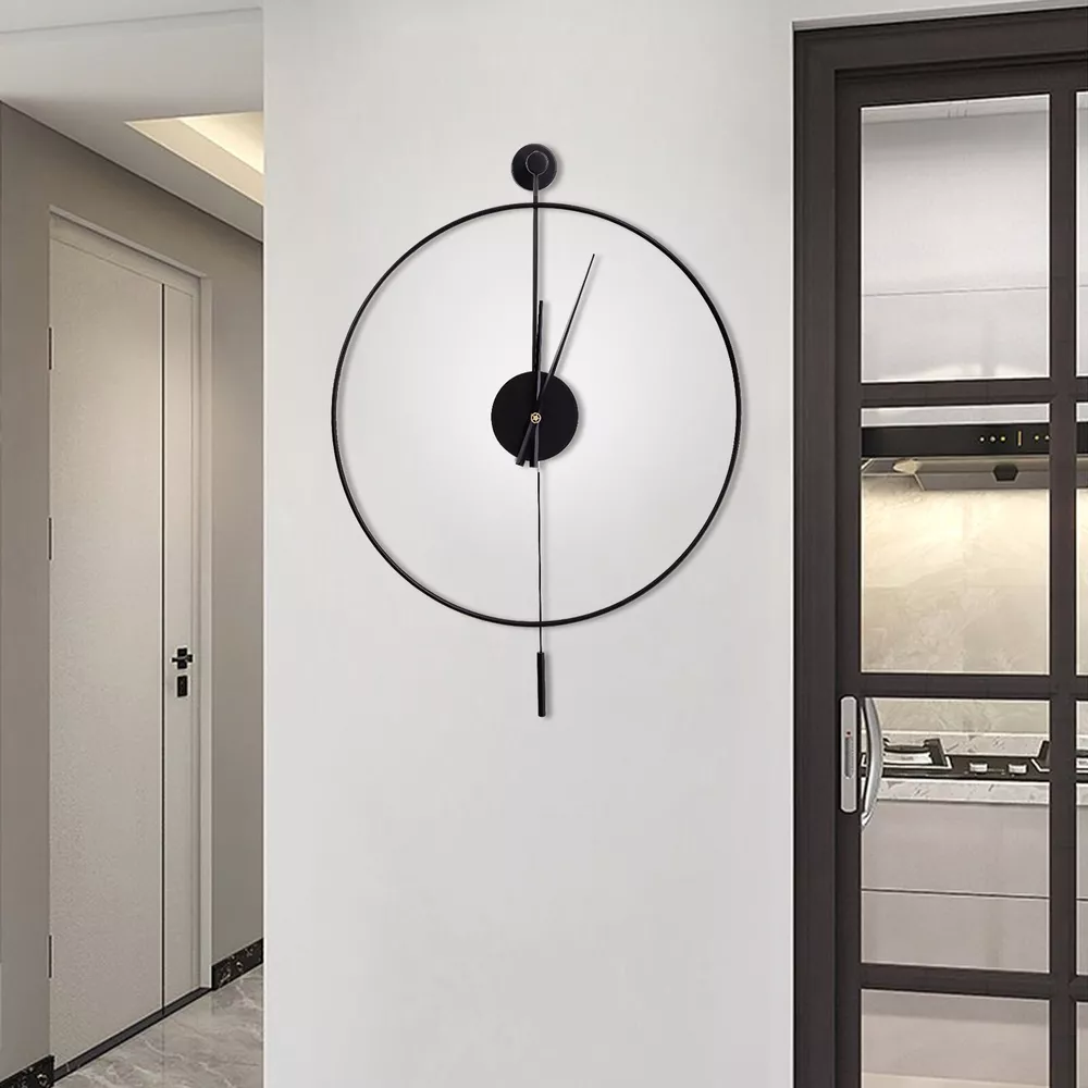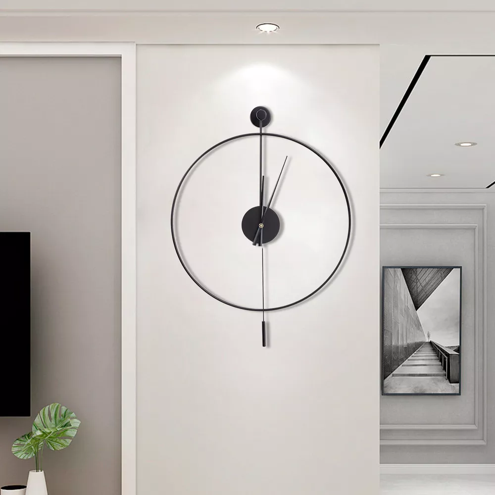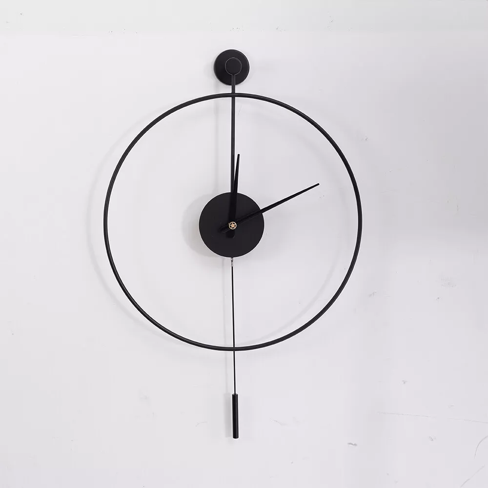Modern Round Wall Clock Unique Design Silent Quartz Movement For Office, Study Description Are you frustrated with the old wall clock at home that keeps ticking? Do you want a quiet, stylish, and durable wall clock? With its high-quality silent movement and metal hands, this wall clock allows you to enjoy every second of silent dreaming. If you are tired of boring walls or want to have more fun in life, then this unique clock will be your ideal choice! Key Features High-quality Materials: This wall clock is made of high-quality iron, which is wear-resistant and durable, ensuring a longer service life. Baking Paint Process: The metal surface is baked lacquered to give it a brilliant and colorful appearance and prevent it from fading. It is also anti-corrosive and rust-proof, prolonging its service life. Low Noise: The clock features a silent quartz movement that runs smoothly and without harsh ticking sounds. It will keep your family free from noise and ensure a good and comfortable night's sleep. Accurate Timekeeping: It is equipped with a high-quality silent movement that runs steadily to guarantee accurate timekeeping, giving you a better user experience. Unique Design: The hollow design of this wall clock highlights a mysterious, elegant and minimalist style. This wall clock can match many modern style home decorations and it can add a distinctive touch to your home. Great Gift Choice : This exquisite wall clock is an ideal gift for parents, friends, teachers, leaders and relatives. It will be the most practical and memorable gift they will ever receive. Time Witness: The wall clock records every second of the warm moments you spend with your family. It is the witness of your good memories. Easy to Clean: It is finished with a baked-on lacquer which gives it a smooth, flat surface for easy cleaning. You can easily wipe off dust and stains with a damp rag. Easy to Install: There are reserved a hanging slot on the back of the base for easy installation. You only need a few simple steps to complete the installation. Excellent After-sales Service: We aim to provide quality products and services. If you have any problems, please feel free to contact us, and we will reply and solve the problem for you as soon as possible. Details Dial Without Numbers: The dial of this wall clock does not have numbers, making the wall clock more simple and generous overall. Metal Pointers: In contrast to plastic pointers, metal pointers are not only stylish and beautiful but also durable and resistant to breakage. Unique Pendulum: The pendulum design on the wall clock is a decorative element and also adds a touch of energy to a quiet space. Application This wall clock is suitable for the living room, hallway, office, study, bedroom, dining room, hall, exhibition hall, and other occasions. It is also an ideal gift choice for your friends or your family. Installation 1. Determine the position of the non-marking nails. 2. Fix the non-marking nails with a hammer. 3. Align the hooks and hang the wall clock. 4. Complete the installation. Specification Material: Iron Pointer Material: Aluminum Color: Black Style: Modern Shape: Round Surface Treatment: Baking Paint Power Source: Battery Powered Number of Batteries Required: 1*AA Battery(Not Included) Mounting Type: Wall Mount Operation Mode: Silent Quartz Movement Base Diameter: 7cm/2.76in Dial Diameter: 50cm/20in Packing Size: 53*7.3*54cm/20.86*2.87*21.25in Net Weight: 1kg/2.2lbs Gross Weight: 1.2kg/2.64lbs Package Included 1* Wall Clock 1* Base 1* Pendulum 1* Non-marking Nail 2* Long Screws Notes Please do not use too many alkaline power batteries, which affect the life of the movement and sometimes even the accuracy of the timekeeping. Please note that the package does not include a AA battery, so you need to purchase them separately. Please allow the slight color difference caused by the shooting light and 1-3 cm error due to manual measurement, and make sure you do not mind before ordering. Payment Delivery details Terms of sales About us Contact us Payment We accept ebay payment 。 Fees such as import duties, taxes are not included in the item price or shipping costs. These charges are the buyer's responsibility. Delivery details Shipping: 2-9 working days to: USA Terms of sales We maintain high standards of excellence and strive for hundred percent customer satisfaction. Feedback is very important to us. We hope that you contact us immediately before you give neutral or negative feedback, so that we can address your concerns. It is impossible to address issues if we do not know about them! About us Your satis faction is our ultimate goal. We work hard to earn your trust and future business. Our certified technicians have tested each item before shipping. The unit comes with 1 year limited warranty on all manufacturing defects. a) If you receive a defective item, you may return it or ask for a discount. Please contact us within 14 days after you receive the package. b) What you returned must be intact and in its original packaging as re? u. Customer is responsible for shipping costs of the returned item. c) We will cover the cost of shipping back t with the shipping rate indicated in the registration page. We will send you a new unit or refund the full payment you paid. Thank you. Contact us Business Hour Business Hour: Monday To Friday: 8:30 AM to 5:00 PM (Beijing China time) Due to time zones, our reply to your questions may not be immediately. But within above working time, we will reply your email within 24 hours. If it's non-workdays, please kindly be patient and wait till Monday. Please contact us with ebay message. Please feel free to contact us if you have any questions. Monday To Friday: 8:30 AM to 5:00 PM (Beijing China time) Due to time zones, our reply to your questions may not be immediately. But within above working time, we will reply your email within 24 hours. If it's non-workdays, please kindly be patient and wait till Monday. Please contact