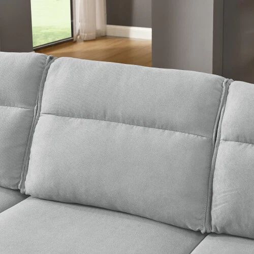 Specification Product Information Product Type: Combo Item Product Name: Modern Sofa 3-Seat Couch with Stainless Steel Trim and Metal Legs for Living Room,New package compression sofa technology Main Material: Foam Seats: 3 Seat Product Features 【Spacious & Comfy Couch】The 5 seater sofa offers an ideal space for your leisurely lifestyle. Comfy couch features 22 inch depth seating area, spacious armrest and thickend cushion, can meet your resting needs easily. 【Soft Linen Fabric】Upholstered in soft linen fabric, decorates your home with simple and clean. 【Modern Minimalist Couch】 Linear and minimalistic, the seat cushions are designed to fits with the armrests, lefting a simple look. The metal trim on the front provides a more artistic touch. 【Sturdy Construction】Equipped with awesome hardwood underframe and steel frame back, deep seat sofa is designed to ensure solidity and durability. 【Packaging upgrade】 New package compression sofa technology