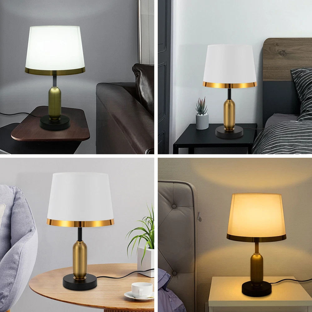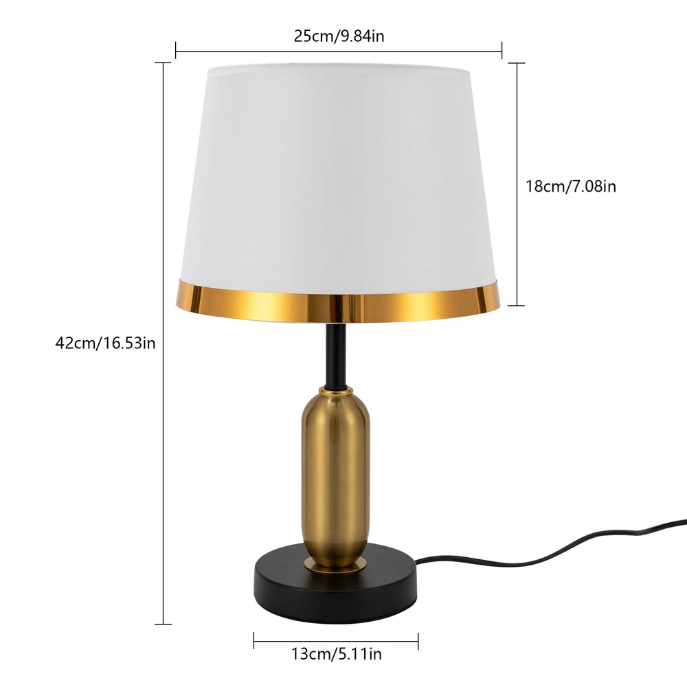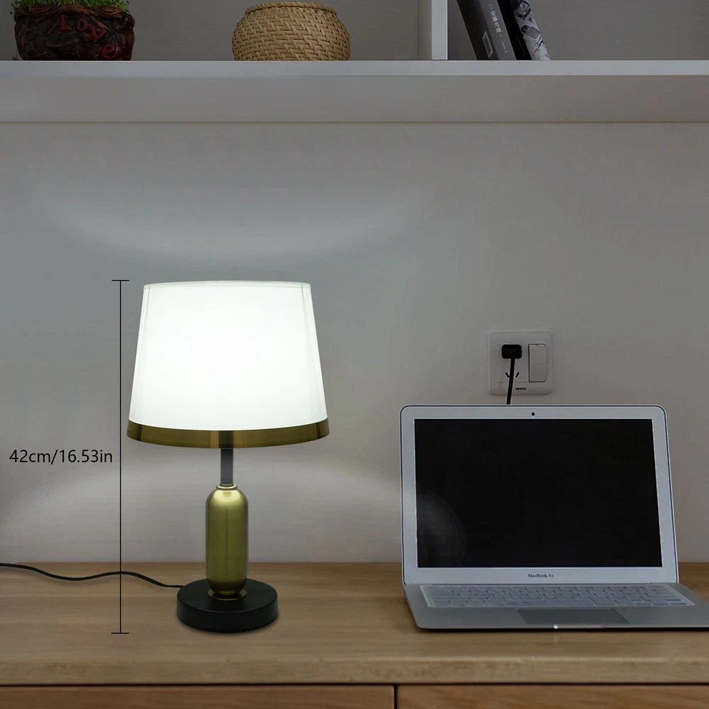 Modern Table Lamp Bedroom Bedside Reading Desk Light Table Desk Reading Light Welcome~ Description This table lamp is made of high-quality iron, PVC and EVA materials through electroplated and baking paint processes, which is ideal for adding a touch of aesthetics and sophistication to any space. Its button design allows for convenient use. If you are looking for inspiration for your home decoration and ambient lighting, then this item is a great option . Key Features Build to Last: Our product is made of high-quality iron, PVC and EVA materials through electroplated and baking paint processes, so it is resistant to deformation and corrosion, and has a long service life. Bedside Lighting Assistant: The PVC round lampshade and E27 light source help emanate soft, non-glaring radiance within 32.29-53.82ft² , so you can enjoy a relaxing bedtime reading. Modern Decoration: Fusing the aesthetics of contemporary art and the spirituality of design, this table lamp is a work of art with clean lines and simple style. It can fit into most home decoration styles and bring you an enjoyable visual experience. Easy to Use: You simply install the lampshade and bulb, insert the plug into the socket, and press the switch to turn it on, enjoying a peaceful bedtime. Wide Voltage: This product supports a wide voltage range (110-220V) and can adapt to different voltage environments. Dimmable Design: You can also install dimmable bulbs and a compatible dimmer switch (not included) to adjust the light colors(warm light, white light, neutral light) in 3 levels for creating different environments. Easy to Clean: Thanks to the simple structure, detachable lampshade, and smooth surface, you can easily wipe it clean with a rag. Beautiful Appearance: The elegant white body and umbrella-shaped lampshade allow the light to cast a charming illumination effect, creating a romantic visual atmosphere for you. Ideal Gift: Because of its beautiful appearance and classic design, you can give it as a gift to your friends or colleagues on Christmas, Thanksgiving, housewarming, and other holidays. Protective Package: To prevent damage to the product due to bumps in transit, we place foam to protect the product as much as possible. Quality Service: We are honored that you have chosen our product. We have sufficient confidence in the quality of the product so that you can buy it confidently. But if you have any questions, you can contact our customer service, he will patiently answer and solve your problems . Details Sturdy Base: The 5.11-inch round base with EVA pads increases the stress area and makes the whole product more stable. Standard Lamp Holder: The standard E27 lamp holder is compatible with LED, halogen, incandescent lamps, etc., making it easy for you to replace and purchase. Long Power Cord: The 4.92-in power cord reduces limitations when using it and can be placed next to the bed for easy switching of the light on and off. Application With a lig hting area of 32.29- 53.82ft² , it is ideal for studies, hallways, living rooms, bedrooms, bars, aisles, foyers, hotels, corridors, cafes, children's rooms, libraries, billiard parlors, end tables, office tables, and other indoors. Specifications Material: Iron, PVC, EVA Style: Modern Color: White Process: Electroplated, Baking Paint Assembly Required: Yes Mounting Type: Tabletop Indoor/Outdoor Usage: Indoor Power Source: Corded Electric Plug Type: US Standard Controller Type: Hand Control Switch Type: Push Button Efficiency: E Light Colors: 3 (Warm Light, White Light, Neutral Light) Power Cord Length: 1.5m/4.92in Voltage: 110-220V Max. Bulb Power: 60W Light Source: 1* E27 LED Applicable Area: 3- 5m²/32.29- 53.82ft² Base Diameter: 13cm/5.11in Lampshade Size: 25*18cm/9.84*7.08in Overall Product Height: 42cm/16.53in Package Included 1* Table Lamp All Accessories fo r Assembly Notes Please use the lamp within the applicable voltage range and clean lamps regularly. Please cut off the power supply when you clean the light or replace light bulbs. Please allow the slight color difference caused by the shooting light and 1-3cm error due to manual measurement, and make sure you do not mind before you order. tu1 Payment Delivery details Terms of sales About us Contact us Payment We accept ebay payment 。 Fees such as import duties, taxes are not included in the item price or shipping costs. These charges are the buyer's responsibility. Delivery details Shipping: 2-9 working days to: USA Terms of sales We maintain high standards of excellence and strive for hundred percent customer satisfaction. Feedback is very important to us. We hope that you contact us immediately before you give neutral or negative feedback, so that we can address your concerns. It is impossible to address issues if we do not know about them! About us Your satis faction is our ultimate goal. We work hard to earn your trust and future business. Our certified technicians have tested each item before shipping. The unit comes with 1 year limited warranty on all manufacturing defects. a) If you receive a defective item, you may return it or ask for a discount. Please contact us within 14 days after you receive the package. b) What you returned must be intact and in its original packaging as re? u. Customer is responsible for shipping costs of the returned item. c) We will cover the cost of shipping back t with the shipping rate indicated in the registration page. We will send you a new unit or refund the full payment you paid. Thank you. Contact us Business Hour Business Hour: Monday To Friday: 8:30 AM to 5:00 PM (Beijing China time) Due to time zones, our reply to your questions may not be immediately. But within above working time, we will reply your email within 24 hours. If it's non-workdays, please kindly be patient and wait till Monday. Please contact us with ebay message. Please feel free to contact us if you have any questions. Monday To Friday: 8:30 AM to 5:00 PM (Beijing China time) Due to time zones, ou