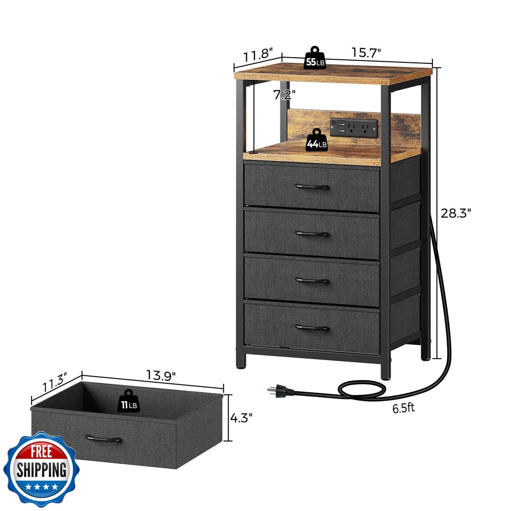 Seventable Night Stand with Charging Station, Tall Nightstand with 4 Fabric Storage Drawers, Side Table with LED Light for Bedroom, Entryway, Rustic Brown Features 4 Fabric Storage Drawers Night Stand: This versatile night stand boasts 4 vertical fabric drawers, offering generous storage capacity to keep clothes, books, gadgets, and daily essentials neatly tucked away. Measuring just 11.81"D x 15.75"W x 28.19"H, it fits seamlessly into small space—no need to sacrifice style for space, as it delivers both smart organization and a sleek footprint Nightstand with Charging Station: Equipped with 2 USB ports and 2 AC outlets, this nightstand allows you to easily charge your smartphone, headphones, smartwatches, and other electronic devices right by your bedside. The thoughtfully positioned outlets ensure your devices are always within reach, making it perfect for nighttime use Easy to Assemble Side Table: Assembling this side table is a stress-free breeze. Thanks to our easy-to-follow, step-by-step instructions, precision-numbered components, and a full set of included tools, even first-time assemblers can master it effortlessly. In just a little time and effort, you’ll unlock a sleek, functional side table for your bedroom or living room—no hassle, just satisfaction RGB LED Bedside Table: This bedside table features a built-in RGB LED strip to add modern style to your bedroom. Pick from 20 vibrant colors, 21 dynamic modes, and 8 brightness levels to set the perfect vibe. The remote control makes customizing lighting for any occasion quick and easy—elevating your room’s atmosphere effortlessly Sturdy & Durable End Table: Stylish yet durable, this end table uses premium engineered wood and a strong metal frame for long-term use. Tabletop holds up to 55 lbs—ideal for lamps, books, or heavy items. Fabric drawers (11 lbs capacity each) reliably store essentials Shipping Free & Fast Shipping: We offer free shipping to most of the USA with a normal delivery time of 3-7 days. However, due to the current situation, additional delivery time (up to 3 weeks) may be required for some items. Alternative Carriers: We may use alternative carriers (e.g., USPS, FedEx, UPS) to ensure your package arrives safely and on time. Due to the use of multiple carriers, we are unable to provide a tracking number automatically. Handling Time: Orders are processed and shipped within 1-2 business days of receiving cleared payment. Shipping Restrictions: Shipping to Alaska, Hawaii, Puerto Rico, Guam, and other US territories may incur shipping charges or delivery restrictions. Please contact us before ordering, or your order can be refunded/cancelled. State Restrictions: Certain items may not be shipped to California due to state regulations. Contact for Tracking Updates: If you require tracking updates or have any concerns about the delivery of your order, please feel free to contact us, and we will be happy to assist you. Return Policy 30-Day Hassle-Free Returns: If you are not completely satisfied with your purchase, you can return the item for free within 30 days of receiving it for a full refund or exchange. Easy Return Process: Contact us, and we will provide you with a prepaid return shipping label and detailed instructions. No Restocking Fee: There are no restocking fees for returns. However, the buyer is responsible for return shipping costs if the return is not due to a seller"s error. Refund Processing: Refunds will be processed within 1 business day of receiving the returned item in its original condition. Feedback Your feedback is extremely important to us. We strive to provide the best products and customer service possible. If you are satisfied with your purchase, please take a moment to leave us a positive review. If you have any concerns or issues with your order, please contact us before leaving negative feedback. We are committed to resolving any problems and ensuring your satisfaction. Contact Us If you have any questions or concerns, please feel free to reach out to our customer support team. You can contact us through the eBay messaging system. We are available Monday to Friday, 9:00 am to 5:00 pm EST, and we will do our best to respond to your inquiry within 24 hours. Thank you for supporting our small family business!