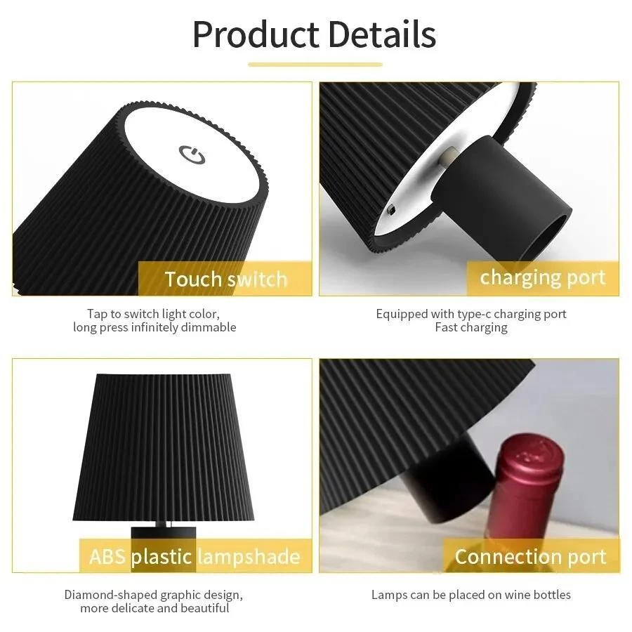 Free and fast shipping , shipping take up 1-7 Business Days 30 Day Return Accepted EASY PAYMENT via PayPal, Credit Card, PayPal Credit, Google Pay... Table Lamp LED Plastic Multicolor Touch Medium Modern USB Novelty Rechargeable Specificity: Product name : Rechargeable Desk Light Material :ABS Light source: LED Dimmable: Multi-level brightness controllable Power: 5W Switch type: power switch button Features: Ajustable hose + Clip+ Dimmable Charging method: USB rechargeable Light color: Warm White, natural white, cool white Voltage: DC 5V Features: • 3-level brightness adjustment :The desk lamp has 3 levels of brightness adjustment, warm light (3000K), warm–white light (4500K) and white light (6500K).allowing you to customize the lighting to your needs and preferences. • Eye protection :The desk lamp is designed with eye protection in mind, ensuring that your eyes are safe and comfortable while you work or read. Package Included: 1* Table Lamp 1* USB Charging Cable REVIEWS The product came very well packaged. I'm very happy. thank you for everything. Seller strongly recommended. This is great! I definitely recommend! Product looks amazing Delivery was fast. Excellent seller, great communication. I advise everyone to buy it!