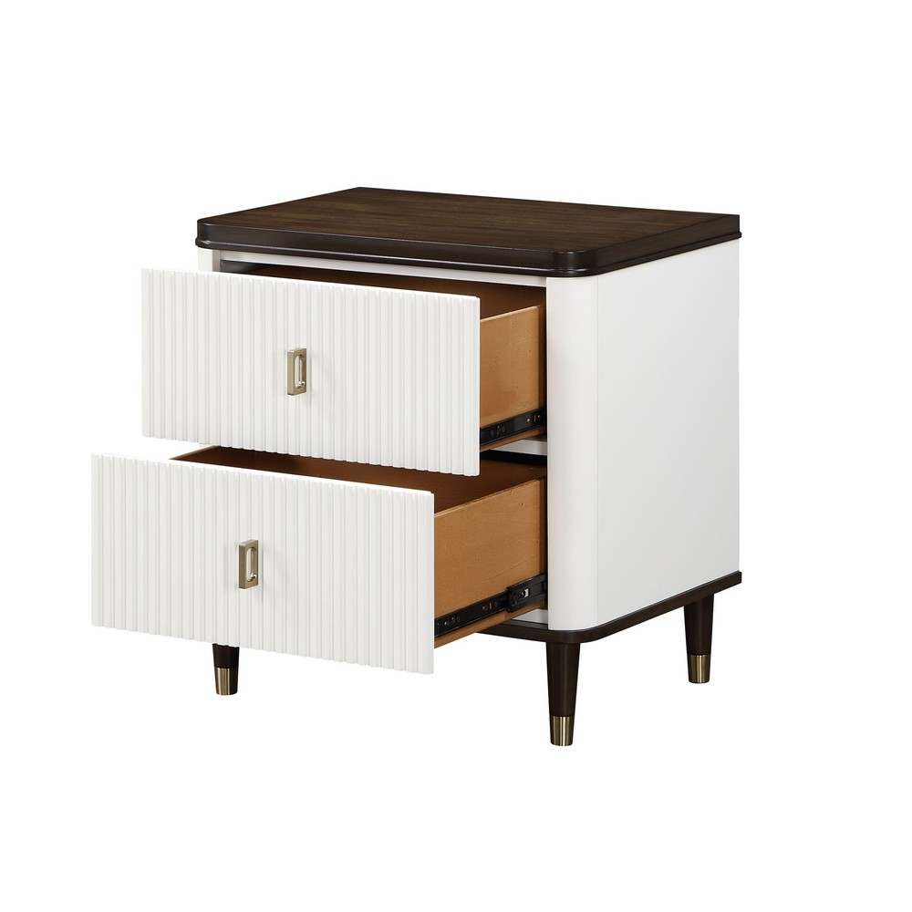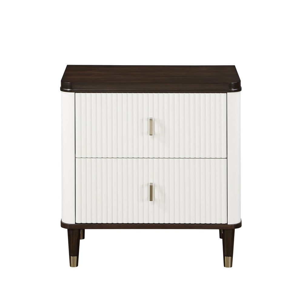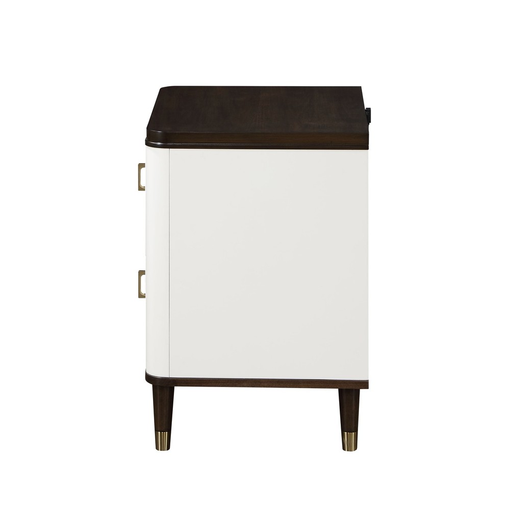 Transform your bedroom into a sanctuary of style and convenience with our Contemporary Wooden Storage Nightstand. Featuring a chic white and brown finish, this accent cabinet effortlessly blends modern aesthetics with practical functionality. Its sleek, contemporary design makes it a perfect fit for any bedroom decor, adding a touch of sophistication and flair.Designed with your needs in mind, this nightstand includes two spacious drawers to help you keep your essentials organized and within reach. Whether it's your favorite bedtime reads, remote controls, or personal items, youll find ample space to store them neatly. The built-in USB ports offer a modern convenience, allowing you to charge your devices with ease, right next to your bed.Features: Modern Elegance: With its striking white Free Shipping Over $49.99* Details Contemporary Wooden Storage Nightstand,Accent Cabinet with USB and 2 Drawers Product Description: Transform your bedroom into a sanctuary of style and convenience with our Contemporary Wooden Storage Nightstand. Featuring a chic white and brown finish, this accent cabinet effortlessly blends modern aesthetics with practical functionality. Its sleek, contemporary design makes it a perfect fit for any bedroom decor, adding a touch of sophistication and flair. Designed with your needs in mind, this nightstand includes two spacious drawers to help you keep your essentials organized and within reach. Whether it's your favorite bedtime reads, remote controls, or personal items, youll find ample space to store them neatly. The built-in USB ports offer a modern convenience, allowing you to charge your devices with ease, right next to your bed. Features: Modern EleganceWith its striking white and brown finish, this nightstand brings a touch of contemporary sophistication to your bedroom decor. Built-In USB PortsCharge your devices effortlessly without the clutter of extra cables, thanks to convenient USB ports integrated into the design. Spacious StorageTwo roomy drawers provide ample space for organizing your essentials, keeping your bedside tidy and clutter-free. Easy AssemblyDesigned for hassle-free assembly, so you can enjoy your new nightstand quickly and easily. Sturdy ConstructionBuilt to support up to 80 lbs, ensuring durability and long-lasting performance for residential use. Perfect DimensionsAt 26''L x 18''W x 27''H, this nightstand is the ideal size to fit seamlessly into your bedroom without overwhelming the space. Upgrade your bedroom with this stylish and functional piece, and enjoy the perfect blend of form and function.