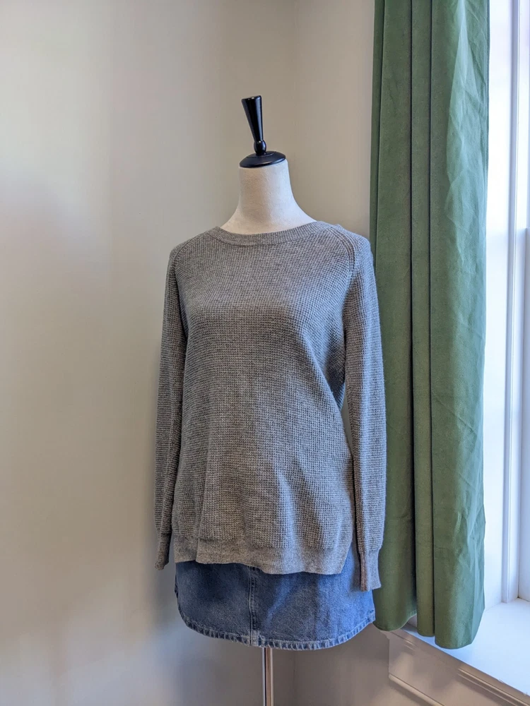Elevate your wardrobe with this modern and minimalist boho grunge Madewell gray sweater. This sweater features a comfortable fit and a stylish design. Made with high-quality materials, this sweater is perfect for any occasion. The gray color is versatile and easy to style, while the Madewell brand is known for its quality and attention to detail. Ideal for those who want to stay on-trend while still enjoying comfort and practicality. Tagged: small, fits small to medium Pit to pit: 20" Length: 27" Condition: excellent condition Made by: Madewell Fit: voxy Fabric: wool blend Stretch: yes Weight: lightweight Closure: pullover Pockets: no