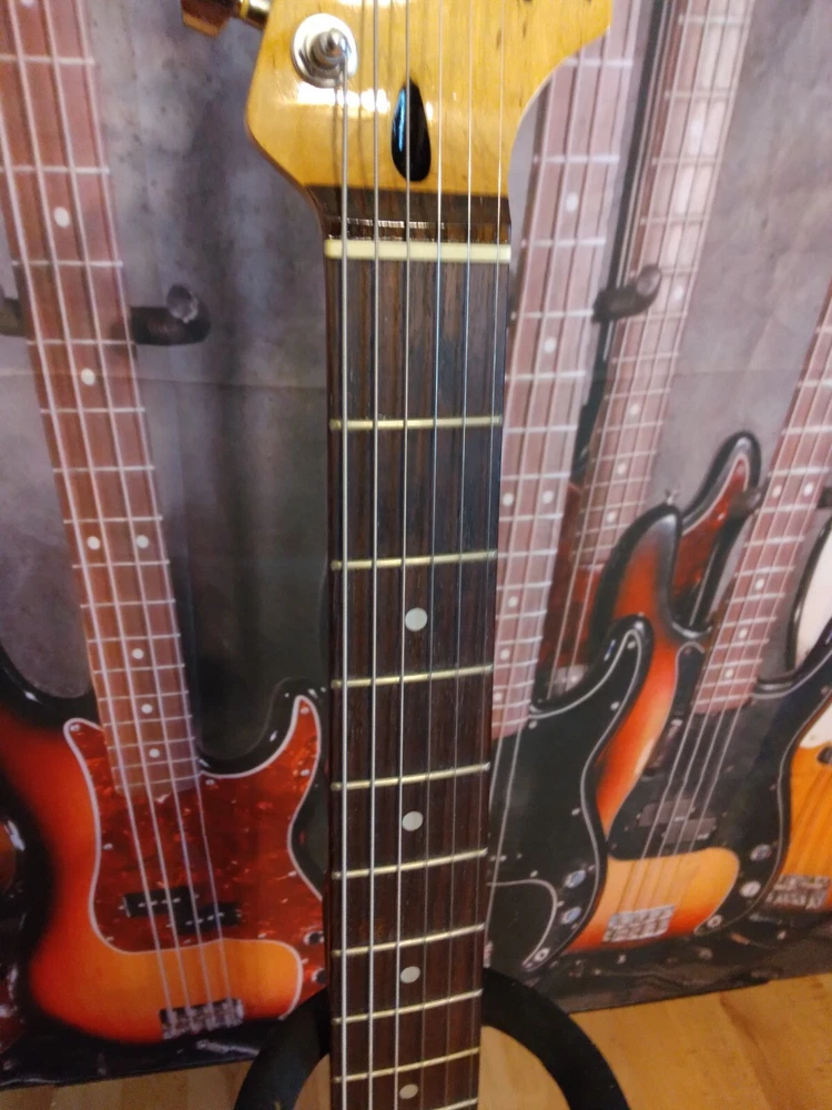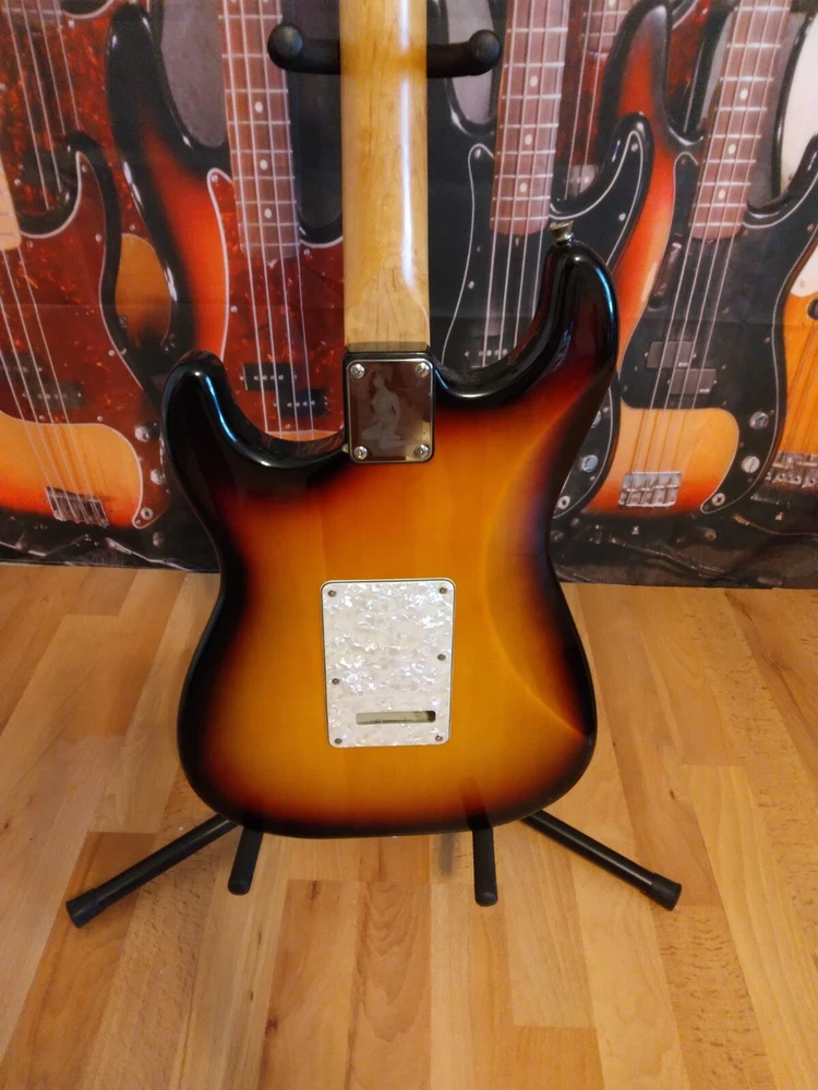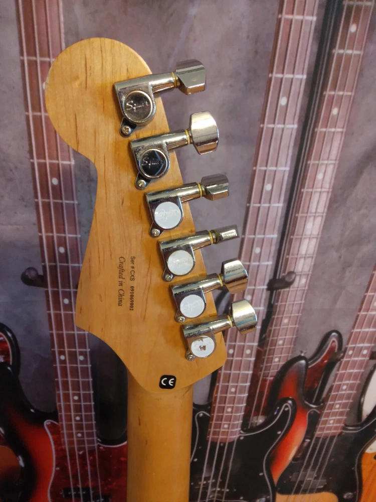 This electric guitar is a modified Fender Squier, in open box condition. with MIM loaded pickguard, perfect for any music enthusiast. (Neck 6.6k, middle 6.7k, bridge 11.8 k) Fender stratocaster waterslide logo added, Frets are in mint condition Set up with low action. Plays and sounds great. Shipping only in the 48 Continental states