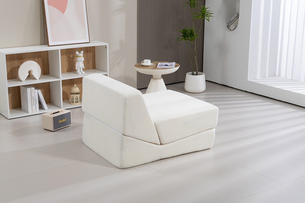 This folding sofa bed is a game-changer! The high-resilience foam cushions offer amazing comfort, whether sitting or napping. It effortlessly transforms from a couch to a lounger, floor mat, or even a guest bed—perfect for small spaces. The modular design requires no assembly, making it super convenient to move around. Ideal for apartments, RVs, or cozy living rooms, it’s versatile, comfy, and so practical! Love how it adapts to any need without sacrificing comfort. A must-have for flexible seating!