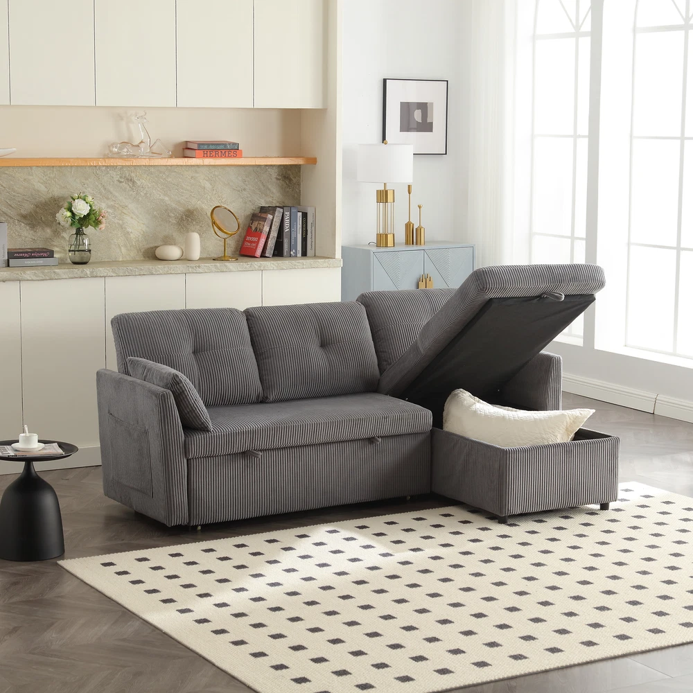 This modular L-shaped sofa is a game-changer for small spaces! The reversible chaise and hidden storage make it super versatile—perfect for lounging, sleeping, or stashing extra blankets. The dark grey velvet fabric feels plush and stylish, while the easy assembly (tools included!) was a breeze. Love how it transforms my living room into a cozy, functional spot without sacrificing style. Great value for the price!