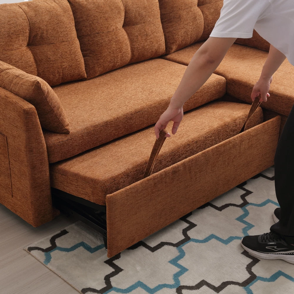 Absolutely love this modular L-shaped sofa! The reversible chaise is a game-changer, allowing flexible layouts, and the hidden storage is super convenient. Super comfy chenille fabric in a rich brown shade blends well with any decor. Assembly was straightforward with the included tools, and the sturdy build makes it perfect for lounging or hosting guests. Great value for the price!