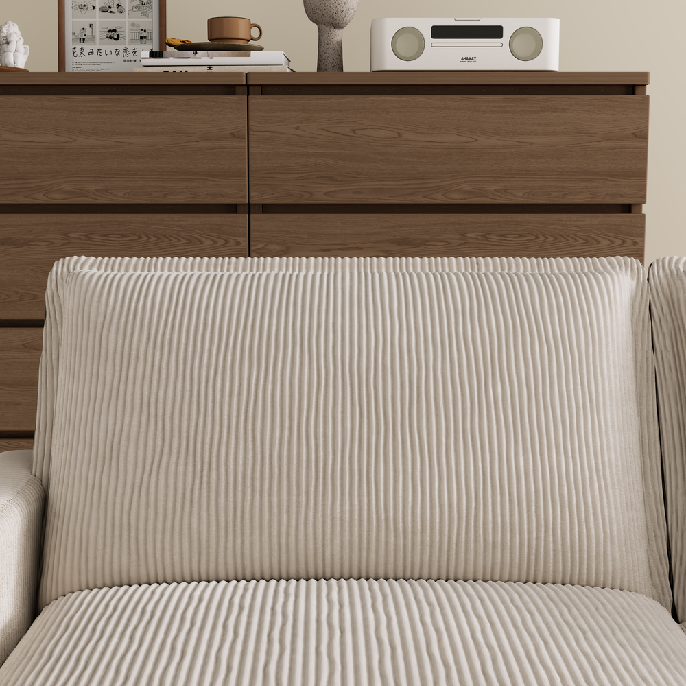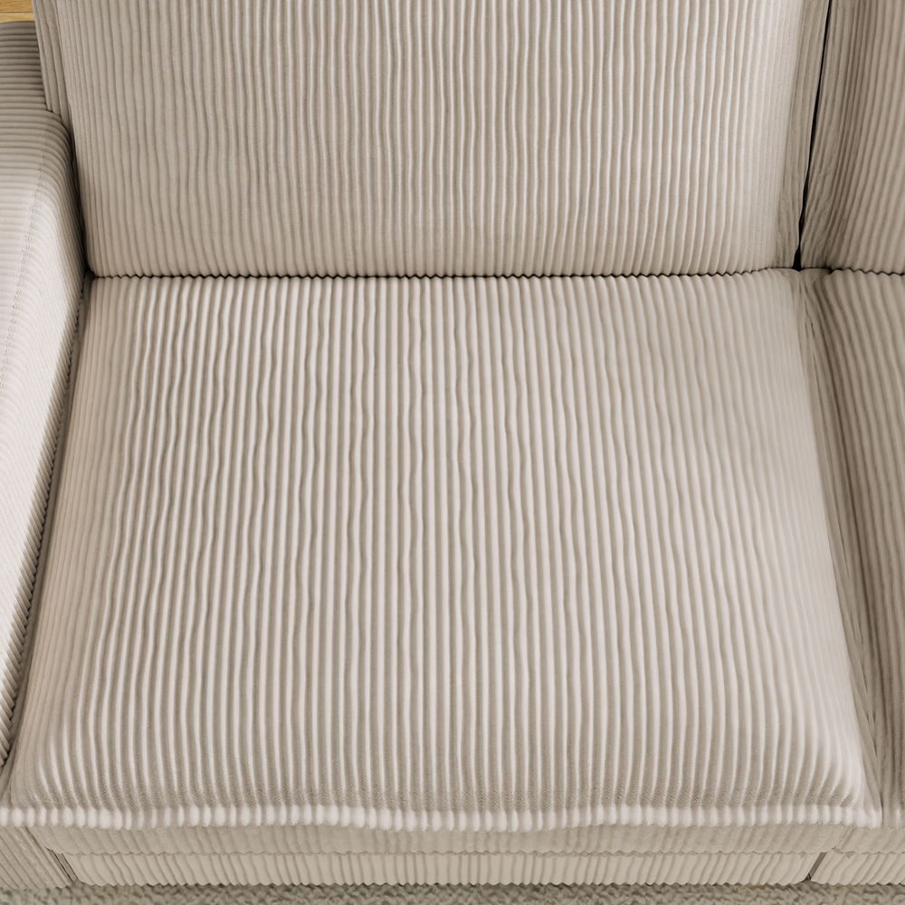 This sofa is absolutely amazing! The deep, plush seats make it perfect for lounging, napping, or even stretching out like a bed—super comfortable whether you're reading, scrolling on your phone, or just relaxing. The sturdy solid wood frame and reinforced springs provide great support, while the soft, breathable corduroy fabric feels luxurious. Plus, the modern L-shape fits perfectly in any living space. It's like sinking into a cloud every time you sit down—definitely worth buying!