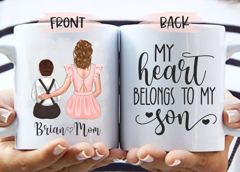 Mom And Son Mug Gift For Mom Custom Mother And Son Gift Mom Appreciation My Product Details.. This high quality 11oz. ceramic white mug has a premium hard coat that provides crisp and vibrant color reproduction sure to last for years. Perfect for all hot & cold beverages. The highest quality printing possible is used. It will never fade no matter how many times you wash it. Material: 100% Ceramic. Print both sides. Dishwasher and Microwave Safe. High Gloss + Premium White Finish. Printed in the U.S.A. Personalized & Custom. We support personalized and custom mug to add custom, when placing an order, you can add notes to the "order note" in shipping address section. Also you can contact us directly via message. Shipping Info. Ready to ship in 1 to 2 business days, All products are made-to-order and proudly printed in the United States. Shipped by USPS and DHL, You will receive your order in 5-7 days. Replace & Refund. All products are defective during shipping broken, chipped will be replaced free of charge. You are not satisfied with the product, we will refund 100% money to you. If any other issues arise, please do not hesitate to message, we would be more than happy to assist you.