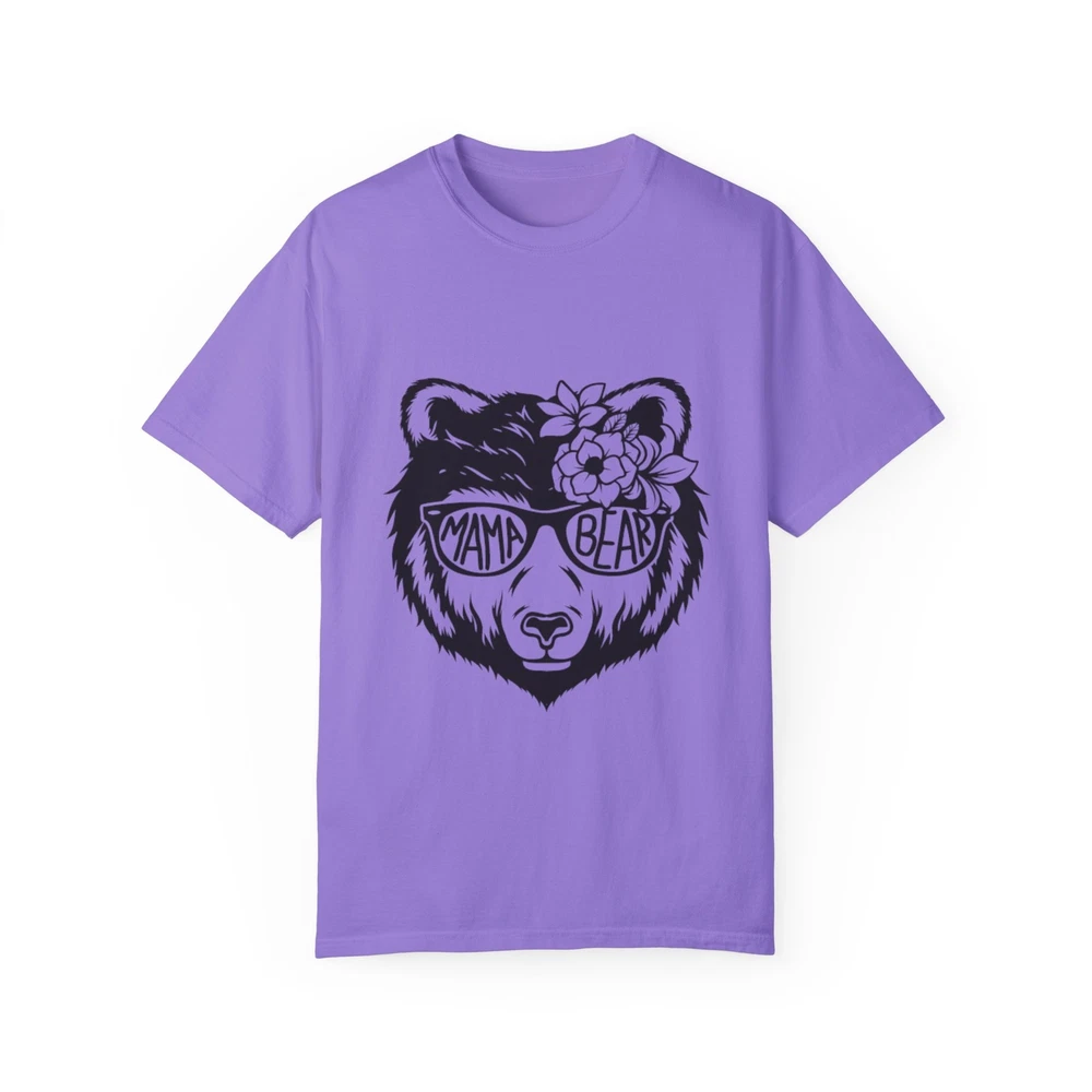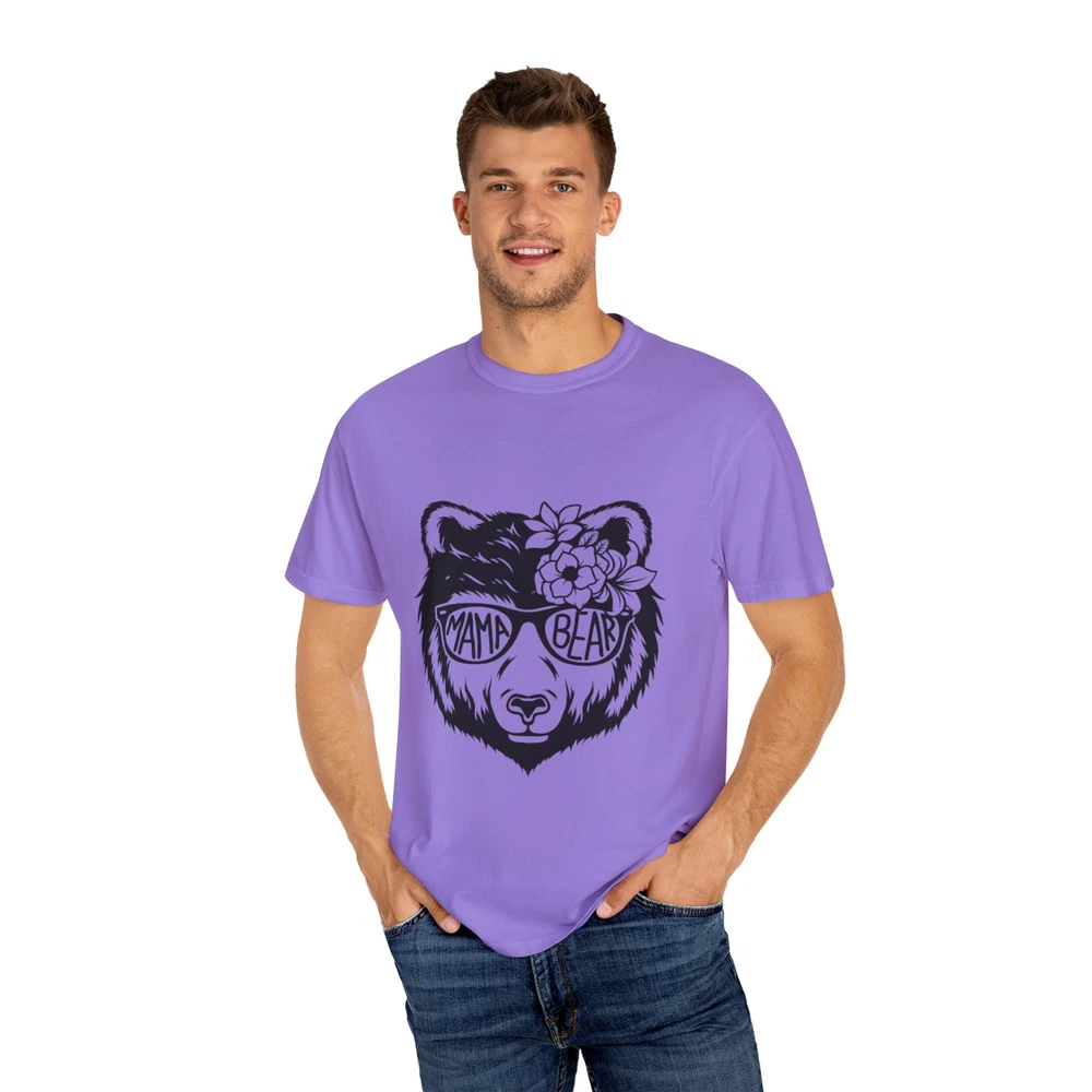 A trendy and comfortable T-shirt featuring a design of a cool momma bear wearing glasses. This garment gives off a relaxed and casual vibe, perfect for everyday wear. Ideal for moms, animal lovers, and anyone looking for a unique and stylish tee. Great for Mother's Day, birthdays, or just a fun addition to your wardrobe. Product features - Available in sizes S to 4XL - Double-needle stitching for durability - Garment-dyed fabric for a soft texture - Made with high quality, pre-shrunk US cotton - Ideal for casual and semi-formal settings Care instructions - Machine wash: cold (max 30C or 90F) - Do not bleach - Tumble dry: low heat - Iron, steam or dry: low heat - Do not dryclean