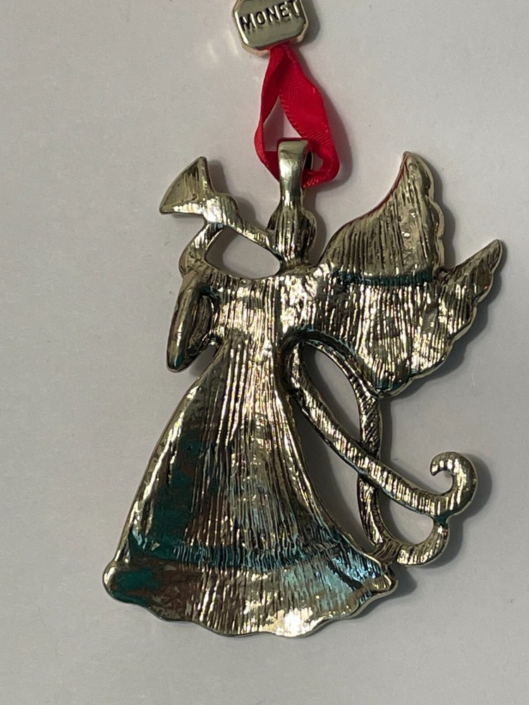 Monet Designer Holiday Angel Trumpet Rhinestone Christmas Tree Ornament 2019 This is a holiday 2019 Designer Monet ornament. The ornament is gold-tone with rhinestones. It hangs by a red ribbon with a pendant that says, Monet & 2019" It measures 7" long (including ribbon. It is 2.25" wide. These make a great gift for someone you love or for yourself! Great for weddings, holidays, or date night! Please look at all photos and ask all questions before purchasing. Check back regularly as we list new items daily. Thanks for Stopping by today!