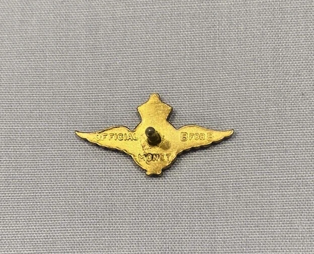 This is a rare and authentic Monet WWII RAF Wings "Official BUNDLES FOR BRITAIN" Pin with blue and red enamel and a screw back closure making it a good for a lapel. It is a great addition to any militaria collection and a piece of history from the World War II era. The pin was made in the United States and is an original period item, Monet has always been a US company producing their products in the North East. The pin features the Bundles for Britain service organization started as a grass roots project to help supply much needed relief goods to Britain, it was originated in New York City. It is a unique item that will make a great conversation starter. The pin is in excellent shape and has been well-preserved over the years, it measures 7/8". Don't miss out on the opportunity to own this valuable piece of history.