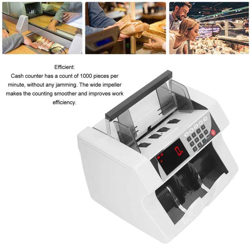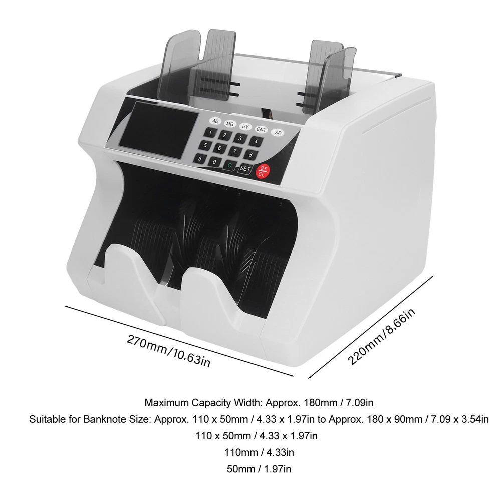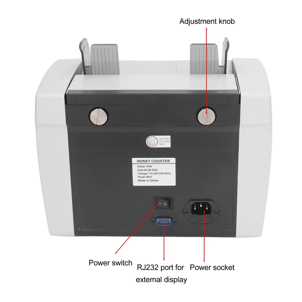 Feature: 1. HIGH ACCURACY: By using MG, UV, IR, and MT detection technologies, the currency counter is easy to detect suspicious counterfeit banknotes, continuous banknotes, double banknotes, and half banknotes. 2. LCD ALARM: Once counterfeit or damaged banknotes are detected, the LCD display screen will display a red error code and issue an alarm. 3. MULTIPLE COUNTING MODES: In order to meet various counting needs, we have introduced automatic, manual, counting, adding, batch and other modes, making counting and verification more convenient. 4. EFFICIENT WORK: The cash counter counts 1000 pieces per minute without any jamming, and the wide impeller makes counting smoother, improving work efficiency. 5. APPLICABLE SCENARIO: Currency counter is widely used in shopping malls, banks, supermarkets, game halls, and other fields. Specification: Item Type: Money Counter Material: ABS Mode: 1504 Product Voltage: 110V-220V Counting Speed: Greater than or equal to 1000 bills/minute Maximum Capacity Width: Approx. 180mm / 7.09in Suitable for Banknote Size: Approx. 110 x 50mm / 4.33 x 1.97in to 180 x 90mm / 7.09 x 3.54in, Appearance Size: 270+220mm/10.6+8.7in Capacity: 200 sheets Noise: Less than or equal to 60DB Display: HD LCD display screen Power: 80W Detection Method: IR, MG, MT Package List: 1 x Money Counter 1 x Power Cord 1 x Brush 1 x Counting Screen 1. Our listing price includes the value of goods,packaging cost,and export taxes,not including international duties. 2. duties,taxes,and charges are not included in the item price or shipping fee. 3. T he duties are buyers' responsibility .Please check with your country's customs office determine what these additional costs will be prior to your purchase. 4. All disputes arising from the duties will be submitted to ebay for solution. 1. Any questions, pls. contact us via ebay message or email us. We will reply your message within 48 hours. If you do not receive our reply within 48 hours, pls. post a message again beuse sometimes our message system may block some emails. 2. If you are satisfied with our service, pls. kindly leave us a positive feedback and give us the Detailed Seller Rating with all " 5 " in every area 3. Our aim is to provide Level Customer Service, your recognition will encourage us greatly and serve you better. We strive to keep all our customers satisfy. We will do our up most to exceed your expectations in customer service, communition and dispatching of your orders.