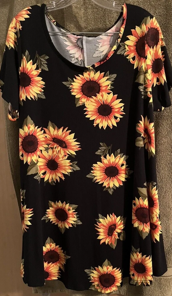 Bright colorful sunflower top - small for size - 21" pit to pit and 31" back neck to hemline, lightweight, would go casual with jeans or leggings.