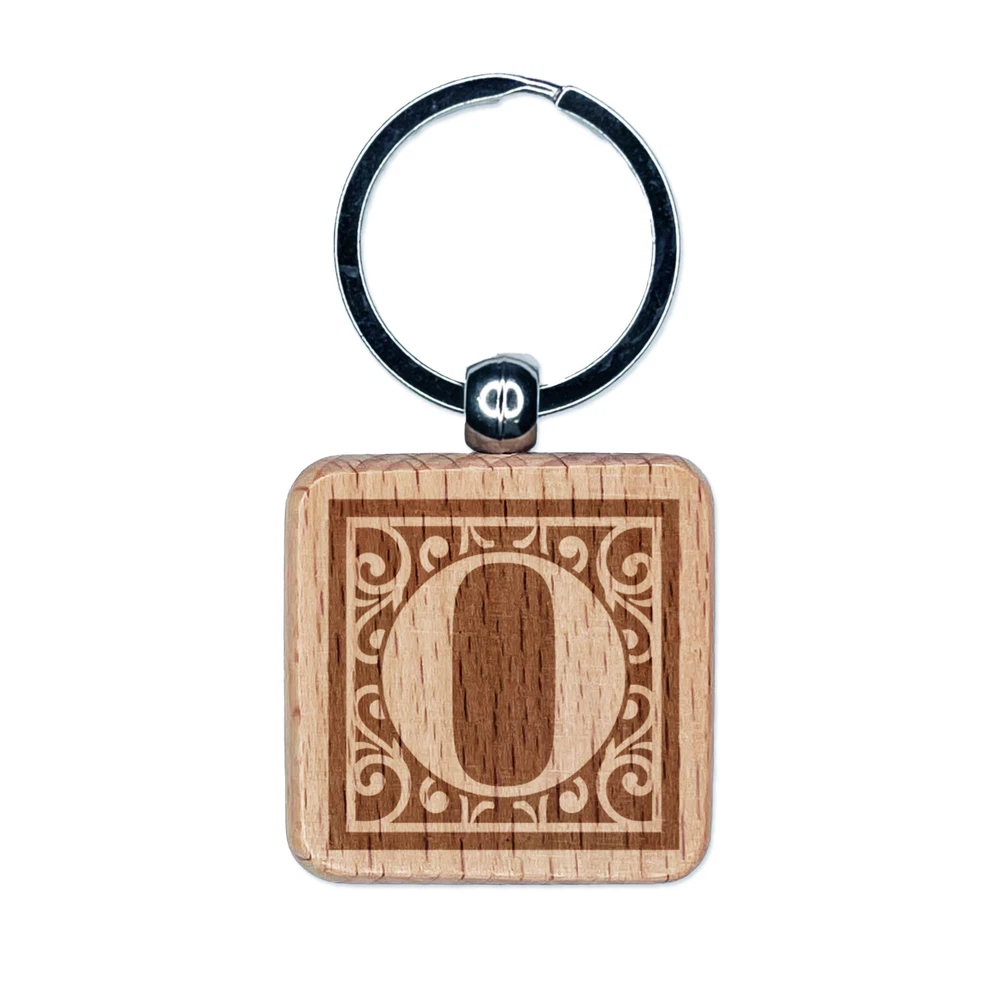 Monograma Remolinos Madera Grabada Madera Cuadrada Llavero Etiqueta Dije