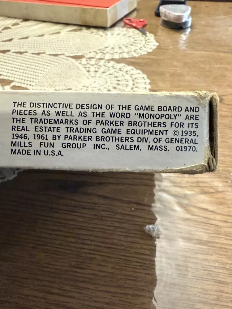 Monopoly 1961 Classic Board Game Parker Brothers Real Estate Comp Orig Box Se all that is in the box