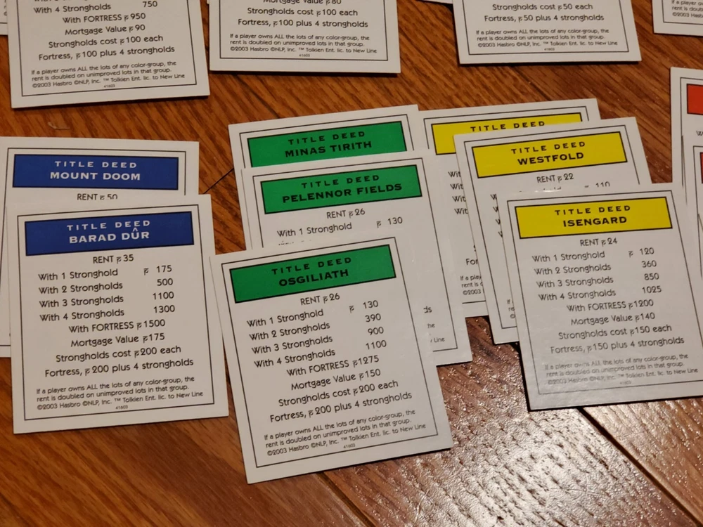 Monopoly 2003 Lord Of The Rings Trilogy Edition Replacement Property Deed Cards