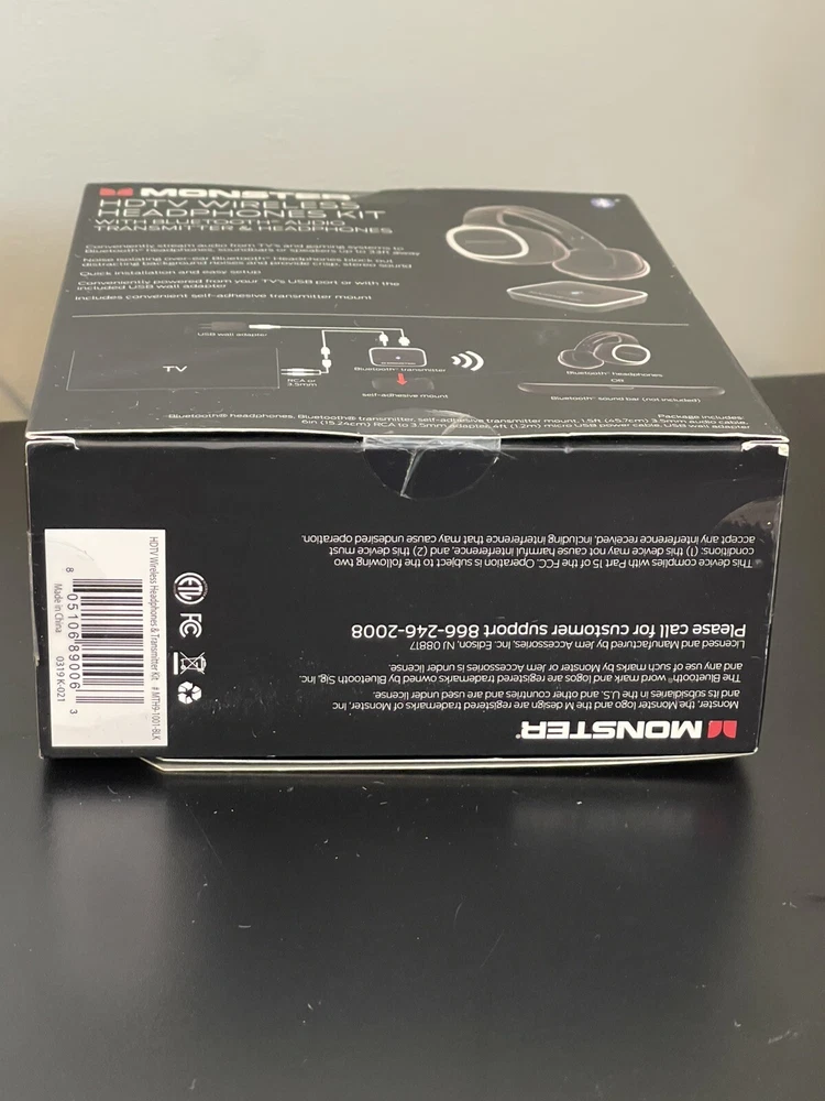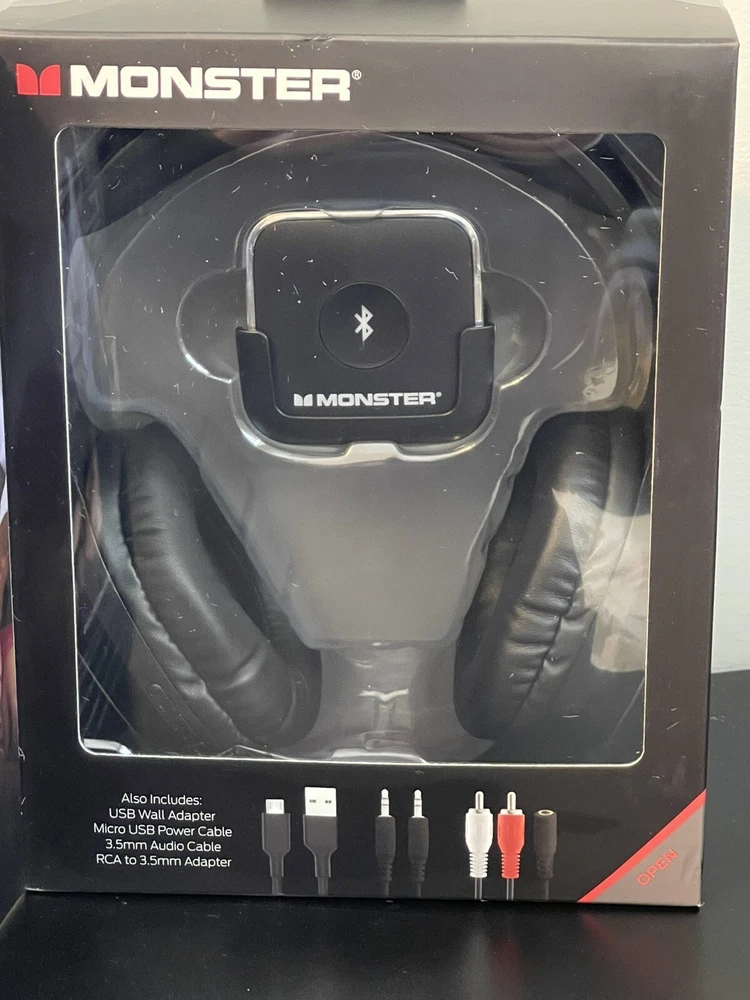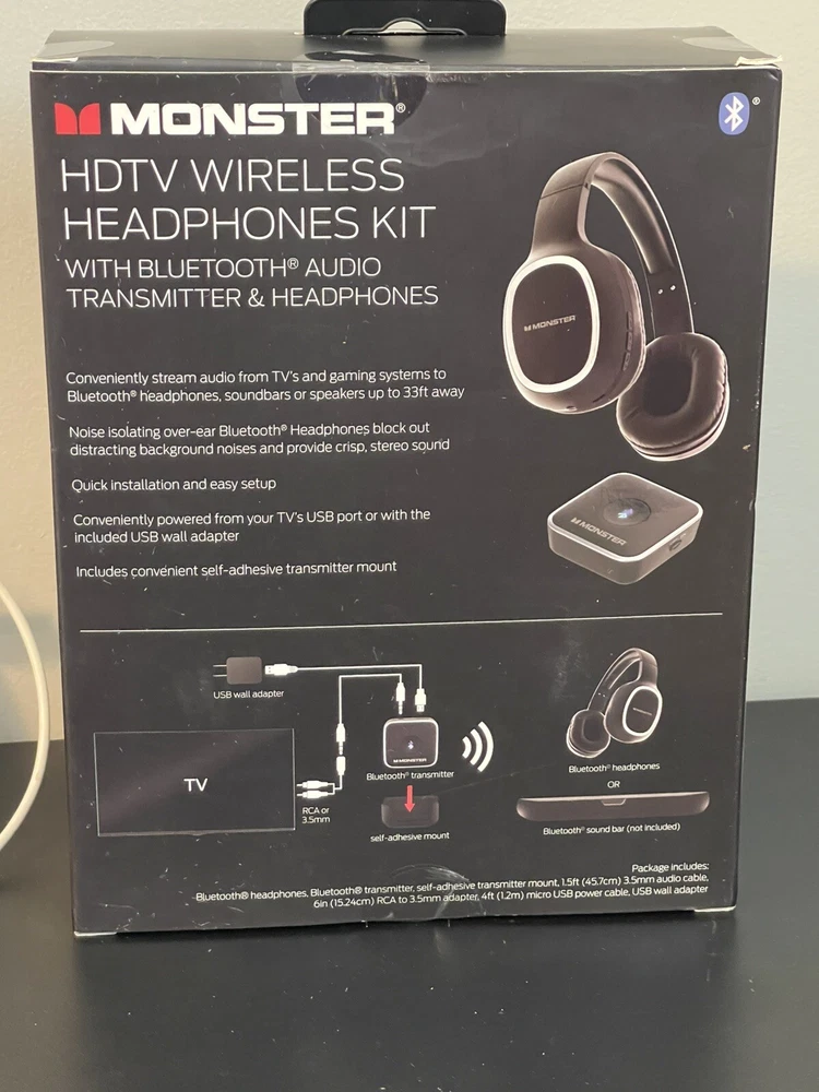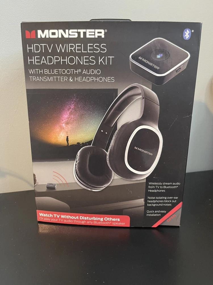 Monster HDTV Wireless Headphone Kit W/ Bluetooth Audio Transmitter (Black) New and sealed. The box does have some wear, as seen in the photos.