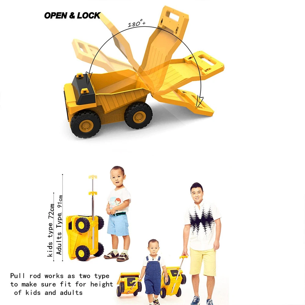 ✨【HIGH QUALITY】kids' luggage crafted from durable and premium ABS material,very sturdy and durable.You can Ride on it or Pull with the Strap (Included), Push it to move anywhere. Not only as kids luggage but also a toy box to store your favourite toys or Xmas gifts.The fantastic combo of truck toy and toddler suitcase! ✨【MAX AFFORDABLE WEIGHT】kids luggage with rolling wheels,the max affordable weight is (approx.)20KG/44LB . Kids could sit on it through the airport when he's tired of walking. A great stroller and a toddler entertainment device when stuck in long lines. A eye-catching toddler suitcase during your travelling. ✨【LARGE CAPACITY】kids suitcase has huge storage space with 18 litres.It's spacious enough to carry toddler's luggage such as clothes,toys ,kids books and other stuff on your travel . This kids luggage fits well in the overhead compartments on the airplane. ✨【ADJUSTABLE HANDLE】kids luggage comes with a durable strap and adjustable handle used for pulling ,it's convenient to adjust different heights for both kids and parents during the journery .The length of shoulder strap is 88cm/34.6 inches ,easily tow tired children on their luggage. ✨【CAN'T-MISS GIFT IDEAl】kids luggage with the monster truck design in its appearance ,it looks like a big toy truck.Combine of luggage and entainment,can be used as a car toy or school back pack for your children after trip,as a special Xmas gift or Birthday gift is also fantastic ideal . Bright yellow color luggage ,this kid suitcase fits for both boys and girls,can't-miss out toy for toy car lovers.