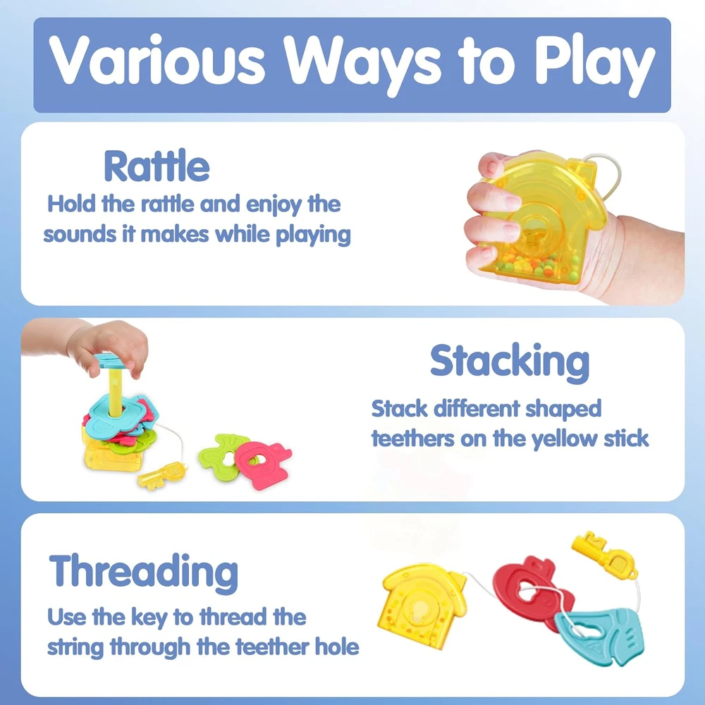 Store New Arrivals Add to Favorite View Feedback Contact Montessori Toys for 1 Year Old - Stacking Sensory Toys for Toddlers 1-3 - 1 Year Old Boy Girl Birthday Gift Christmas Baby Stocking Stuffers - Baby Toys 6-12-18 Months Infant Toys Learning Activities Description Item dimensions L x W x H 6.3 x 2.18 x 3.73 inches Care instructions Hand Wash Only Number Of Items 11 Country/Region of origin China Batteries required No Product Dimensions 6.3 x 2.18 x 3.73 inches Material Silicone, Plastic Material Type Silicone, Plastic Material Composition Plastic Item Weight 8.1 ounces Color multicolor Material free BPA Free Brand Miawow Material Type Free BPA Free 4-in-1 Toy Set: With 11 accessories offering diverse play options like stackingrattles,teethers, , threading, and simulated lock opening, this set features shapes such as airplanes, cars, keys,and houses. Tailored for toddlers aged 1-3, these toys foster growth and provide engaging and rewarding gameplay Montessori Learning Toys: Featuring 9 stackable teething rings with numbers 1 to 9 in blue, green, and red, these toys enhance number and color recognition, classification, matching skills, and fine motor coordination. Montessori toys for toddlers enhancing hand-eye coordination through play Ideal Travel Toy:this small and portable toy features a smooth surface that babies can easily grasp. With its vibrant colors, multiple play options, and attention-grabbing rattling house sounds, it's ideal for outdoor play and encouraging independent exploration. Additionally, the unique teether shape and texture provide relief for teething discomfort in infant aged 6-12 months High Safety and Durability: Crafted from non-toxic, odorless, BPA-free materials, this toy meets national safety standards for child use. Easy to clean, reusable, and long-lasting, it ensures maximum safety and reliability for babes Perfect Gift for Boys and Girls: Whether for birthdays or Christmas, this versatile toy set, featuring teethers, rattles, and stacking strings, evolves with children through various developmental stages. A delightful and gender-neutral gift suitable for 1-2-year-old boys and girls Product Description Baby Sensory Teether & Rattle 9 teethers with various shapes and textures cater to diverse chewing needs of babies., providing soothing relief for teething babies. Made from safe and durable materials with bright colors, it promotes sensory exploration, enhances visual and auditory development, and supports the development of motor skills. Fine Motor Skill Stacking teethers of varied shapes aids in developing babies' fine motor skills. They can experiment with different combinations to inspire creativity and imagination Hearing Development Shaking the rattle room will produce a crisp sound, and it is easier for babies to grasp and shake it when combined with the yellow stick, which promotes the baby's hearing development Hand Eye Coordination Using the key to thread the rope through the teether hole helps young children exercise their hand movement skills, catering to their early developmental needs Number Recognition Kids can combine and classify by shape, color and number, and build color and counting recognition skills through three colors and numbers 1-9 This stacking toy is lightweight and convenient, making it easy for babies to grip. Crafted from safe and durable material free of BPA, it is also easy to clean. The stacking pieces double as teethers, offering a balance of moderate hardness and softness to soothe baby teething discomfort. This engaging Montessori sensory toy captivates the entire family. Parents can join in the fun, assembling and playing with their children. Designed to evolve with kids of various ages, it delights babies aged 6-12, 12-18, and 36 months. They will enjoy stacking, shaking rattles, and holding vibrant teethers during tummy time. A great baby gift choice. ABOUT US We offer the best prices around on high quality products. Our E-store includes media such as books, movies, music and games while offering electronics, toys, sporting apparel, clothing, tools, general home, garden items and more. SHIPPING We are always working hard to ensure your package arrives as soon as possible. Please understand that some factors like weather, high postal traffic, and the performance of shipping companies are outside of our control. We offer free shipping to the lower 48 states and ship within 2 business days of payment, usually sooner. We do not accept P.O. Boxes. Please provide a physical address. RETURNS We offer a 30-Day Return Policy on items which you are not completely satisfied with. You have the option for a full-refund or an exchange of the item. No returns are available on items shipped outside of the USA. PAYMENT We accept PayPal. CONTACT US This page content is yet to come Please ad us to your favorite seller and visit again later Thank You CUSTOMER SATISFACTION We try our very best to make sure every customer is completely satisfied. If there's a problem, message us! We're happy to help.