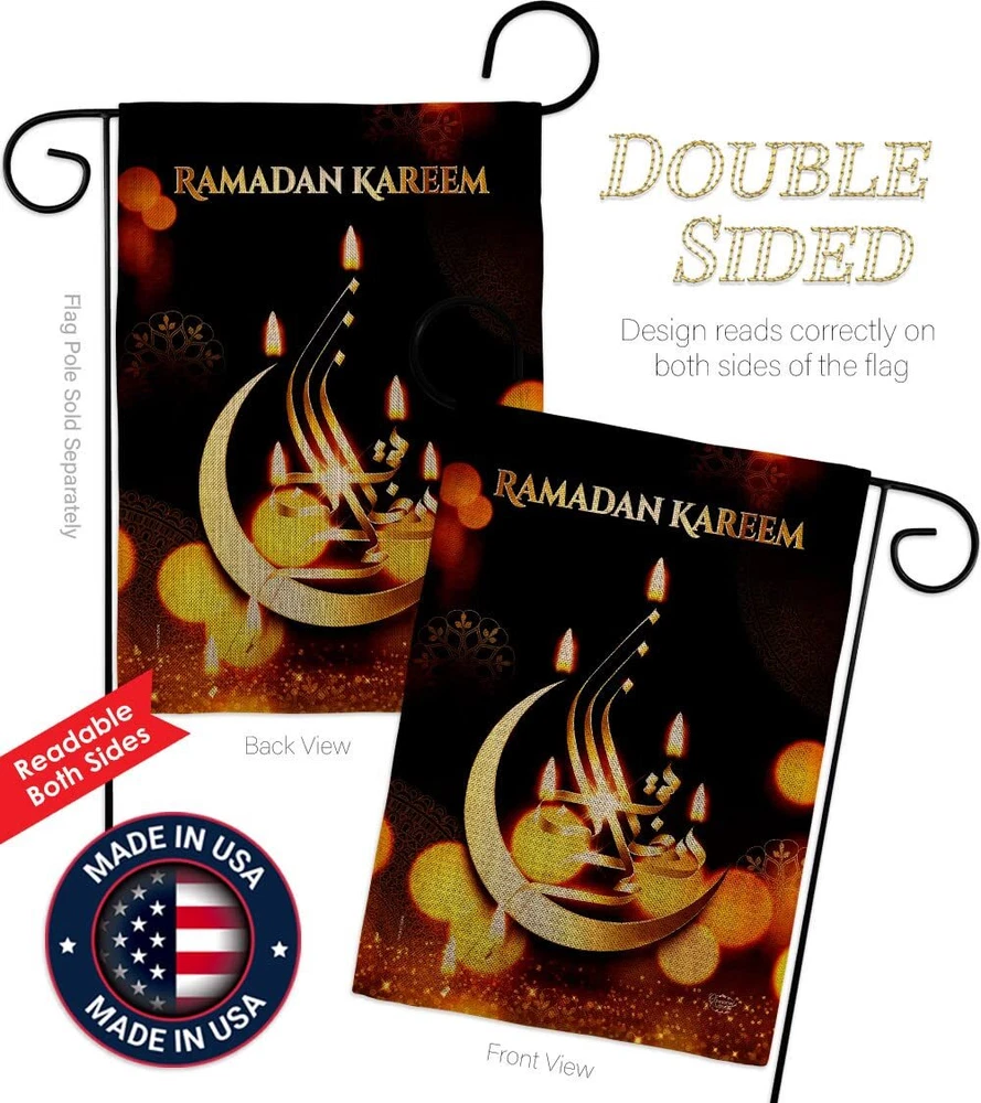 PROUDLY Made In USA - Package And Product Designed In California PURCHASE WITH CONFIDENCE - From 's US Authorized Resellers MADE OF DURABLE - 100% Thick Double Burlap Fabric construction helps resist the wear and tear from frequent use TEXT READABLE BOTH SIDES - Garden Flag Set Double-Sided Print DURABLE FLAG - Double stitching panels on multiple rows and high quality Sleeve to provide lasting strength VIBRANT COLORS - With UV-Resistant Maintains Its Colors All Season Long FEATURES - Free Breaks Down Metal Garden Flag Pole Included!
