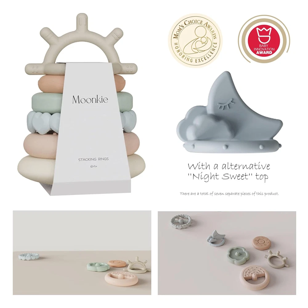 Store New Arrivals Add to Favorite View Feedback Contact Moonkie Stacks of Circles Soft Teething Toy | Educational Learning Baby Toy | Stacking Ring Toys for Babies Boy and Girl | 7 Piece Teethers Set Description Item model number ST-01 Style Stakcing Teething Toy Material Silicone Number Of Items 7 Batteries required No Additional product features Teething Toy, Non Toxic, Dishwasher Safe Product Dimensions 3.94 x 3.94 x 5.6 inches Care instructions Dishwasher, Hand Wash Only Material Type Silicone Item dimensions L x W x H 3.94 x 3.94 x 5.6 inches Material Composition Silicone Item Weight 10.8 ounces Color multicolored Target gender Unisex Material free Phthalate Free Brand Moonkie Material Type Free Phthalate Free ✨ PREMIUM QUALITY: Moonkie's 7-piece stacking ring toys are made of high-quality food-grade silicone, without any fillers or off-odors. These soft baby toys are BPA and Phthalate-free, making them safe for your child to play with and bite freely. ✨ EDUCATIONAL DEVELOPMENT: Our stacking toys are designed to help develop fine and gross motor skills in babies. As they play and learn to stack the rings, they also develop their problem-solving and hand-eye coordination skills, which will be useful for more complex tasks like writing. ✨ VERSATILE TEETHING TOY: Moonkie's baby teething rings are not only great for stacking games but also serve as a safe and soft teether for your baby to chew on. Made from high-quality food-grade silicone, you can let your baby bite our teething rings without worrying about harmful ingredient. ✨ INNOVATIVE DESIGN: Our stacking toys come in 7 pieces with different shapes and sizes , providing more choices for your baby to explore. They are also soft, chewable and portable, making them perfect for on-the-go playtime. ✨ IMPROVED BREATHABILITY: The bottom of the stacking toy now features two holes of proper size to keep it breathable and clean for your baby to play with. ✨ GREAT GIFT IDEA AND SATISFACTION GUARANTEED: Our baby stacking toys make a thoughtful and practical baby shower gift. We stand behind the quality of our products and offer a satisfaction guarantee. If you are not happy with our baby stacking rings, please contact us for a solution. Product Description The video showcases the product in use. The video guides you through product setup. The video compares multiple products. The video shows the product being unpacked. Gift happiness, stack joy! The perfect shower surprise for little ones. Improved The bottom of this stacking toy have been improved. There are two holes in the proper size at bottom to keep it breathable. Stack Up Ring Toys Simple stacking suitable for infant and A tumbler base increases playability. A ring shape easy for small hand grasp Oral Stage Safe guard for your baby while exploring the world with mouth and hands As Excellent Teething Toy Satisfy your baby's chewing desire.Different shapes and sizes combination optional for baby's each teething stage Can these rings be used as teething toys? These stacking rings help develop your baby's fine and gross motor skills, but yes, it can also be used as a teething toy. Can these stacking rings be sterilized in boiling water? Absolutely! You can properly soak them in boiling water for 2-3 minutes to sanitize them and you can also clean them in the dishwasher. Do these toys have a bad smell? Moonkie baby toys are made of high quality food-grade silicone that is friendly to baby's skin, contains no fillers or odors, and is free of BPA and phthalates. What's the size of the stacking toy? This stacking toy, sized 3.94 x 3.94 x 5.6 inches, is designed small for better gripping and biting by your little one's hands. A larger, heavier product may hinder grip and chewing. More Moonkie Baby Products You Might Like Add to Cart Add to Cart Add to Cart Add to Cart Add to Cart Add to Cart Add to Cart Customer Reviews 4.7 out of 5 stars 1,408 4.9 out of 5 stars 2,108 4.9 out of 5 stars 40 4.8 out of 5 stars 1,173 4.5 out of 5 stars 696 4.4 out of 5 stars 208 4.6 out of 5 stars 757 Price $13.99 $ 13 . 99 $13.99 $ 13 . 99 $13.99 $ 13 . 99 $5.99 $ 5 . 99 $9.99 $ 9 . 99 $12.98 $ 12 . 98 $8.69 $ 8 . 69 Feature 1 7 Pieces of Various Shapes 7 Piece Stacking Cups Baby Toy Self-Feeding Practices 360° Soothing Leak Proof & Spill Proof Drop Proof & Spill Proof 360° cleaning Feature 2 Early Learning Toy Soft Teething Toy Fun Rattle Sounds Toothbrushing Three-in-one Design Clear Silicone Design Soft and Delicate Feature 3 Special Baby Gift Special Baby Gift Offering Soothing Relief Cute Koala Design Non-choking Design Straws with Cover Easy to Store BPA/Phthalate/lead/PVC Free ✔ ✔ ✔ ✔ ✔ ✔ ✔ 100% Food Grade Silicone ✔ ✔ ✔ ✔ ✔ ✔ ✔ ABOUT US We offer the best prices around on high quality products. Our E-store includes media such as books, movies, music and games while offering electronics, toys, sporting apparel, clothing, tools, general home, garden items and more. SHIPPING We are always working hard to ensure your package arrives as soon as possible. Please understand that some factors like weather, high postal traffic, and the performance of shipping companies are outside of our control. We offer free shipping to the lower 48 states and ship within 2 business days of payment, usually sooner. We do not accept P.O. Boxes. Please provide a physical address. RETURNS We offer a 30-Day Return Policy on items which you are not completely satisfied with. You have the option for a full-refund or an exchange of the item. No returns are available on items shipped outside of the USA. PAYMENT We accept PayPal. CONTACT US This page content is yet to come Please ad us to your favorite seller and visit again later Thank You CUSTOMER SATISFACTION We try our very best to make sure every customer is completely satisfied. If there's a problem, message us! We're happy to help.