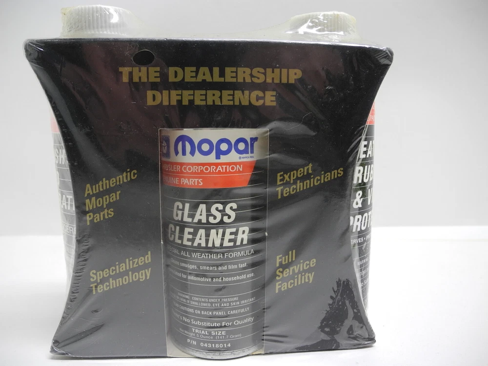 This listing is for a vintage 1991 Mopar Customer One - Care Care Kit - Leather, Glass Clean & Car Wash . The kit is sealed in the original plastic but has some light leakage. The kit measures 9.85W X 2.5D X 4.85H inches. Don't miss out on this vintage Mopar Customer Care Kit. Thanks for looking. International buyers welcome. Please see my listings for other vintage collectibles. I provide lower combined shipping. If you purchase more than one item from me, please wait for me to send you a corrected invoice. Listing and template services provided by inkFrog