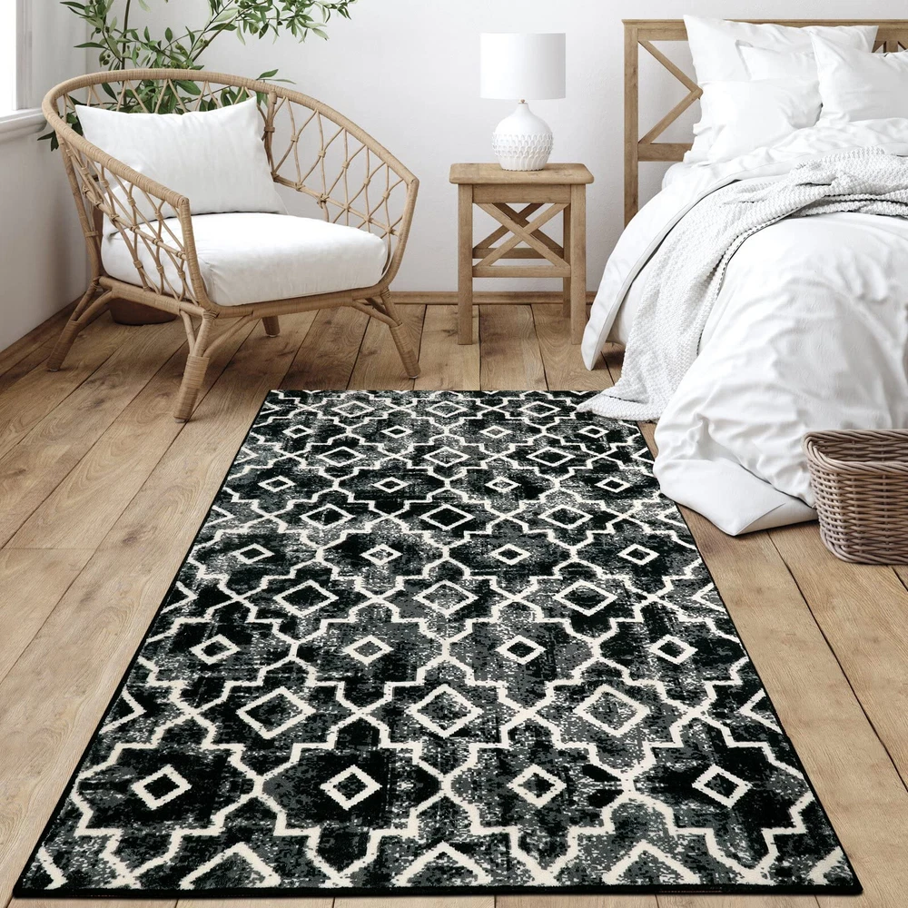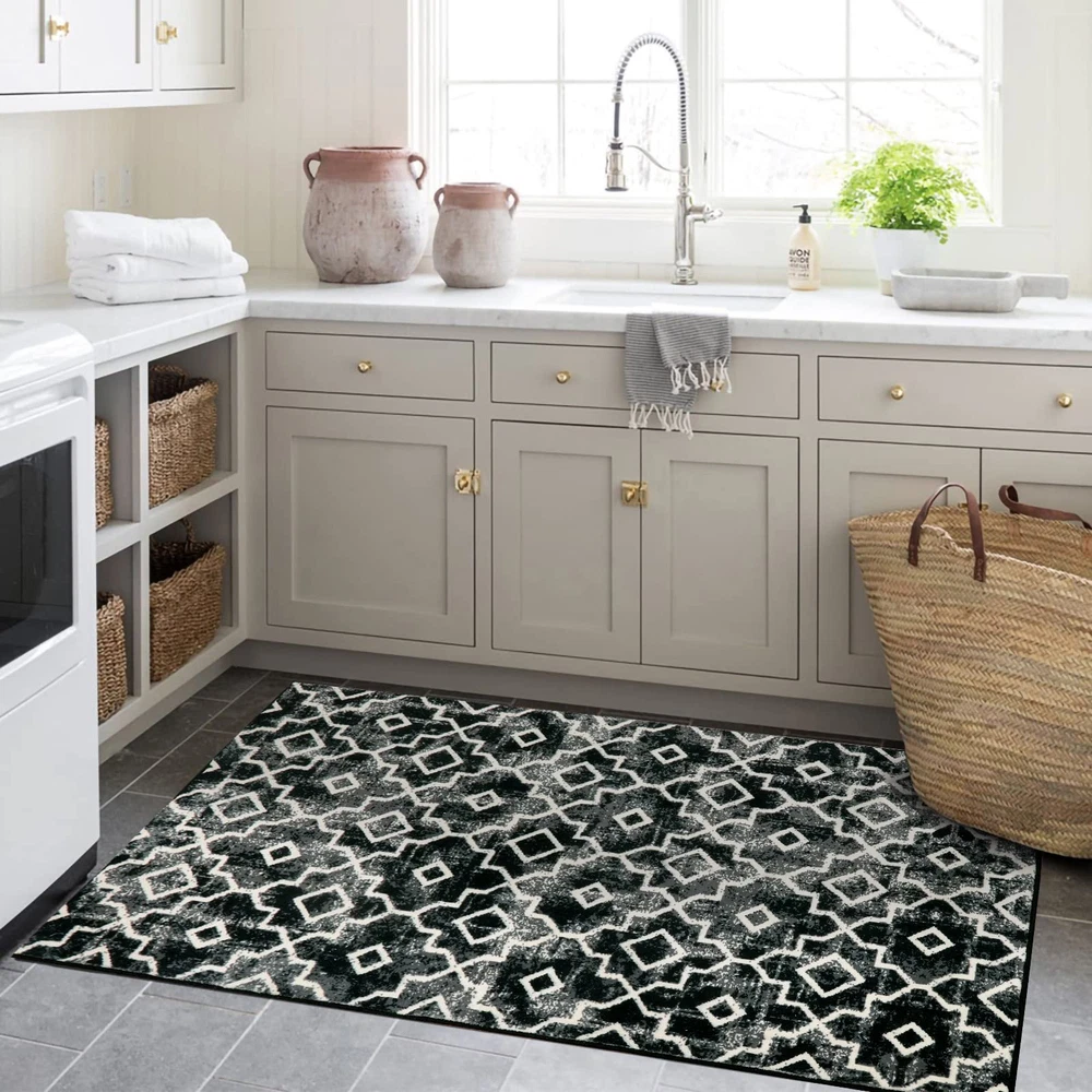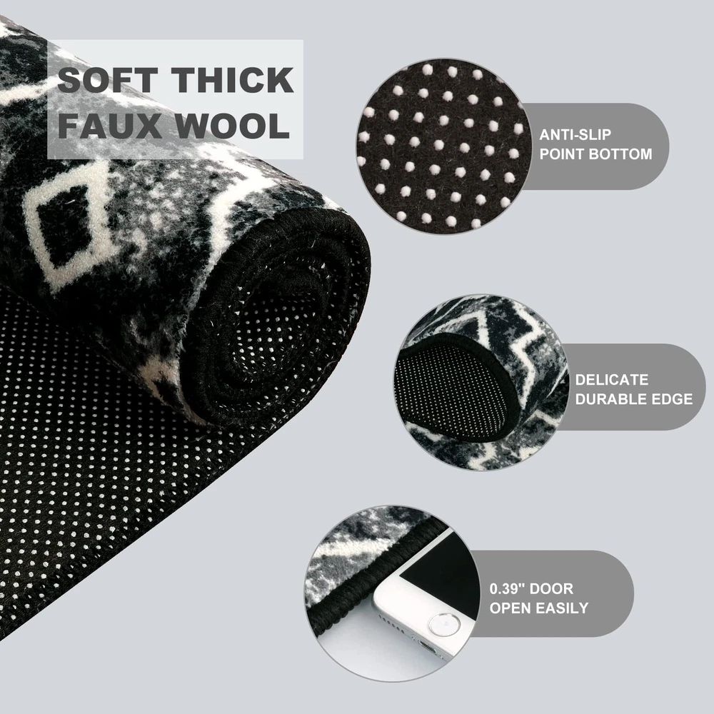 【Moroccan Trendy】-- Transform your home with our stunning faux wool rug, adding a touch of captivating Moroccan style. The distressed style combined with modern accents effortlessly enhances the aesthetics of any room, infusing it with a sense of cozy comfort 【Ultra Soft Material】-- Our faux wool rug has a homey, natural feel underfoot that is incredibly soft and silky, you'll feel like you could lie back and cloud-watch from your living room,there's no better way to warm your feet. Expertly crafted from synthetic fibers,this rug has a virtually non-shedding pile that ensures long-lasting use 【Machine Washable】-- Our moroccan rug is washable for easy care.Just toss in the machine with washing in cold water and dry on low heat.For minor stains,simply vacuum with a handheld vacuum or shake off outdoors.Regular maintenance keeps carpet shiny and spotless. 【Kid & Pet Friendly】-- A modern rug that can withstand those little accidents, pet odors and spills. Polyster washable rug is designed to stand up to the elements, it'll be easier to wash off the dirt. Let your sweet baby and friends play together on this soft rug 【Low-Pile & Non-Slip Rug】-- The non-slip rubber backing provides a good grip to make the mat stay put. Sleek and functional 0.2" pile height allows for convenient placement in entryways, underneath furniture and will not obstruct doorways