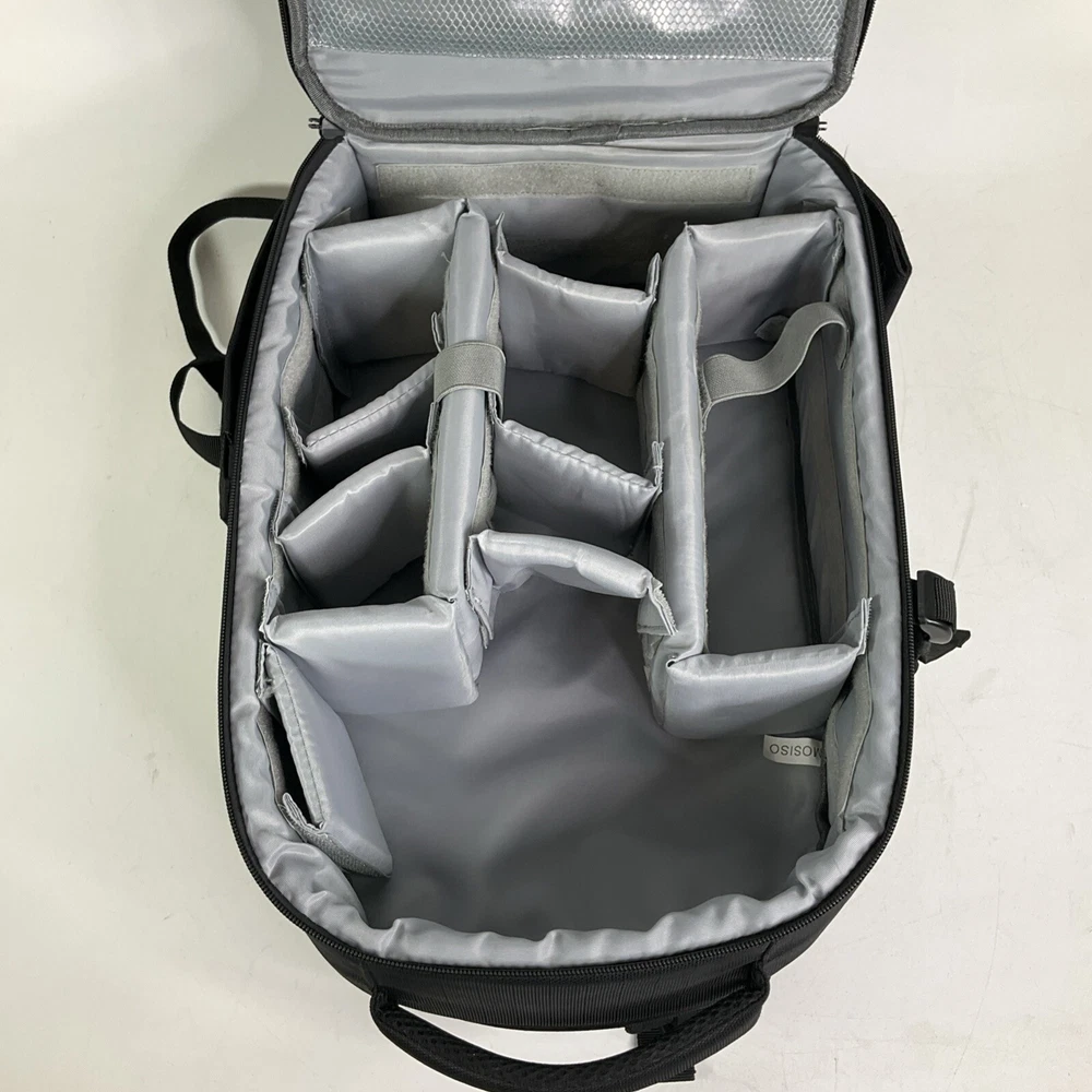 Previously owned Mosiso black camera bag. Its in excellent condition with very minimal wear. Inside is clean has lots of compartment sections to sort your stuff. The outside on the flap has a harder case shell cover, extra protection for the items inside! The backside is padded and has a smaller secret zipper on the lower back. Measures 17" tall x 12" wide x 7" deep. Please see all pics. About Us Customer service is our #1 priority! If for any reason you are dissatisfied with your purchase we offer a 30 day money back guarantee unless otherwise noted in the listing (AS-IS/For Parts - No returns.) We only accept items back in the condition that they were sent to you. Items that are listed AS-IS are not eligible for this money back guarantee. If you are unhappy with your purchase PLEASE contact us BEFORE leaving feedback or contacting eBay so we can work with you to resolve any problems. Shipping When we charge shipping to our customers we only pass on to our buyers exact shipping costs - no added fees. We offer combined shipping for multiple items purchased, so if you purchase more than 1 item from us, please wait for us to combine shipping costs. We require signature confirmation on all items that sell for $750.00 & more per eBay's selling policy. We also insurance all items that sell for $250.00 & more. PLEASE NOTE: WE DO NOT WORK/SHIP ON HOLIDAYS OR WEEKENDS! We use the eBay Global Shipping program for international shipping. DLLR License #991 Please note, we are not an authorized distributor or manufacture's representative of this item. *This product may contain a chemical known to the state of California to cause cancer and birth defects or other reproductive harm* Track Page Views With Auctiva's Counter