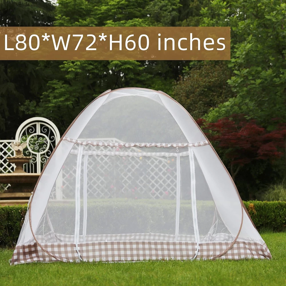 Mosquito Netting for Bed : Our mosquito bed net is made by Breathable high density mesh, Built-in high quality double elastic steel wire,Easy to store and transport, suitable for family life, business travel, etc .this pop-up mosquito net is not only suitable for use in bed, but also can be used as a tent in the yard , Or use it as an outdoor tent when camping in spring and autumn. Pop Up Mosquito Net : Our mosquito netting size is L80 x W72x H60 inch, it’s big enough for 2adults to sleep inside, perfect for queen and king size bed. Pops up quickly,don’t require special skills.easy to install,fold down and wash. Mosquito Net Tent : U-Type Single-Door can easy get in/out. The bottom is entirely netted, provides fully enclosed protection against biting insects and mosquitoes when sleeping outdoors or indoors Portable Folding Mosquito Net : Easy to Pop-Up and Fold , The mosquito netting can be washed by hand in warm water and air dried easily. Suit for home and travel. Package Size: 20 x 20 inch QUALITY ASSURANCE : Our mosquito tent have passed strict quality tests: If you have any questions, please feel free to contact us. We are committed to providing satisfactory customer service within 24 hours. Product Description Mosquito Net for Bed, Pop-up Mosquito Net Tent for Indoor and Outdoor Use, Portable Double Door Travel Mosquito Net with Net Bottom Large Size Mosquito Netting with Net Bottom for Easy Installation,Foldable Double Door Mosquito Net,Suit for Patio Bedroom Camping Trips High Density Mesh Cool and Breathable The Breathable Mesh Pop-Up Mosquito Net has 300 holes per in2 to offer all sides protections for your family,the bottom also included netting. It’s a nice protector for baby rolling down the bed.High Elastic Steel Wire Made of polyester fiber with elastic steel wire, does not rust, foldable, no deformation. Foldable&Portable Easy Install and Transport Easy to Pop-Up and Fold , The tent can be washed by hand in warm water and air dried easily Pop-Up Mosquito Net Tent for Beds Portable Folding Design with Net Bottom for Baby Adults Trip Folding Mosquito Net Tent Canopy Curtains for Beds Home Bedroom Decor Multipurpose Bedroom&living room play tent & Rest In The Yard&Play With Sugar Gliders&Yoga&Sunbathing&Music Festvial&outdoor cinema&Travle Large Mosquito Net Our mosquito bed net size is L80 x W72 x H60 inch, it’s big enough for 2adults to sleep inside, perfect for queen and king size bed. High Quality Mosquito Net Strong Support Steel Wire Dense Clear Mesh Net Single Door Mosquito Net Double Door Mosquito Net Double Door Mosquito Net MOSQUITO NET FOR BABY ADULTS TRIP