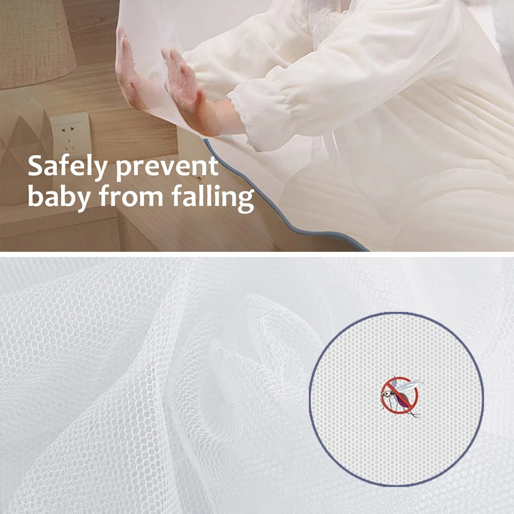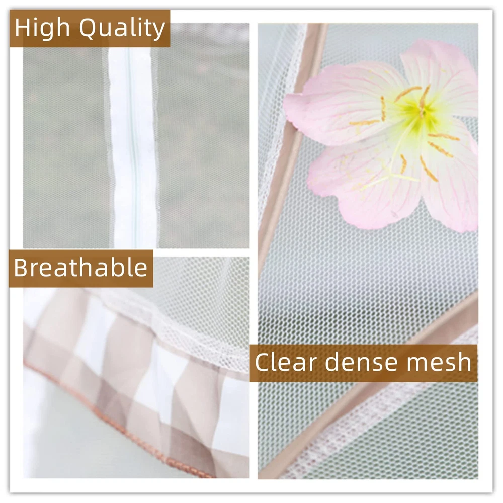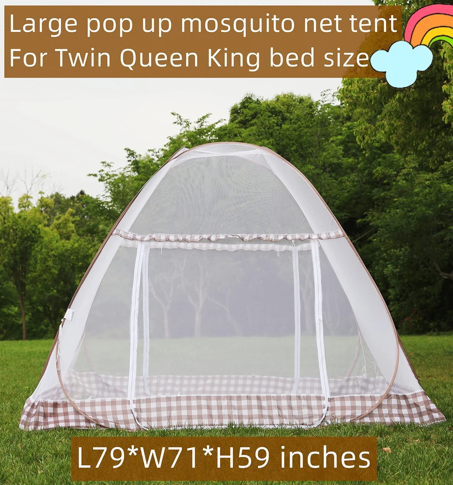 Mosquito Netting for Bed :The Mosquito Netting for bed size is L79 x W71 x H59 inch, it’s big enough for 2 adults to sleep inside, Mosquito Net perfect for queen and king size bed.If you want to put it in suitcase after folded, please make sure your suitcase is big than 23 inch X 23 inch. Mosquito Net for Bed : Easy to Install,it can keep you from mosquito bites,you can enjoy your relax.the elastic bands at the four corners of the mosquito net are well fixed on the mattress.not easy to slide,Get a good night's sleep over night Pop up Mosquito Net : Folding & Portable, U-Type Double-Door can easy get in/out, and each door attached zippers. come with package bag ,Suit for home living,camping and travel.The mosquito tent can be washed by hand in warm water and air dried easily. Folding Mosquito Net:Quality Mesh and Netted Bottom Design,Breathable high density mesh,fully enclosed, it can prevent baby falling from bed. Please protect the bottom when using it outdoors. Avoid with rough ground and sharp objects to avoid damage. It is not a professional outdoor tent. Satisfaction Guaranteed : We stand by our product quality and your satisfaction is our greatest wish.90-day free return,If you have any questions, Feel free to our first-class after-sales service team at any time,We will provide you with a satisfactory solution within 24 hours