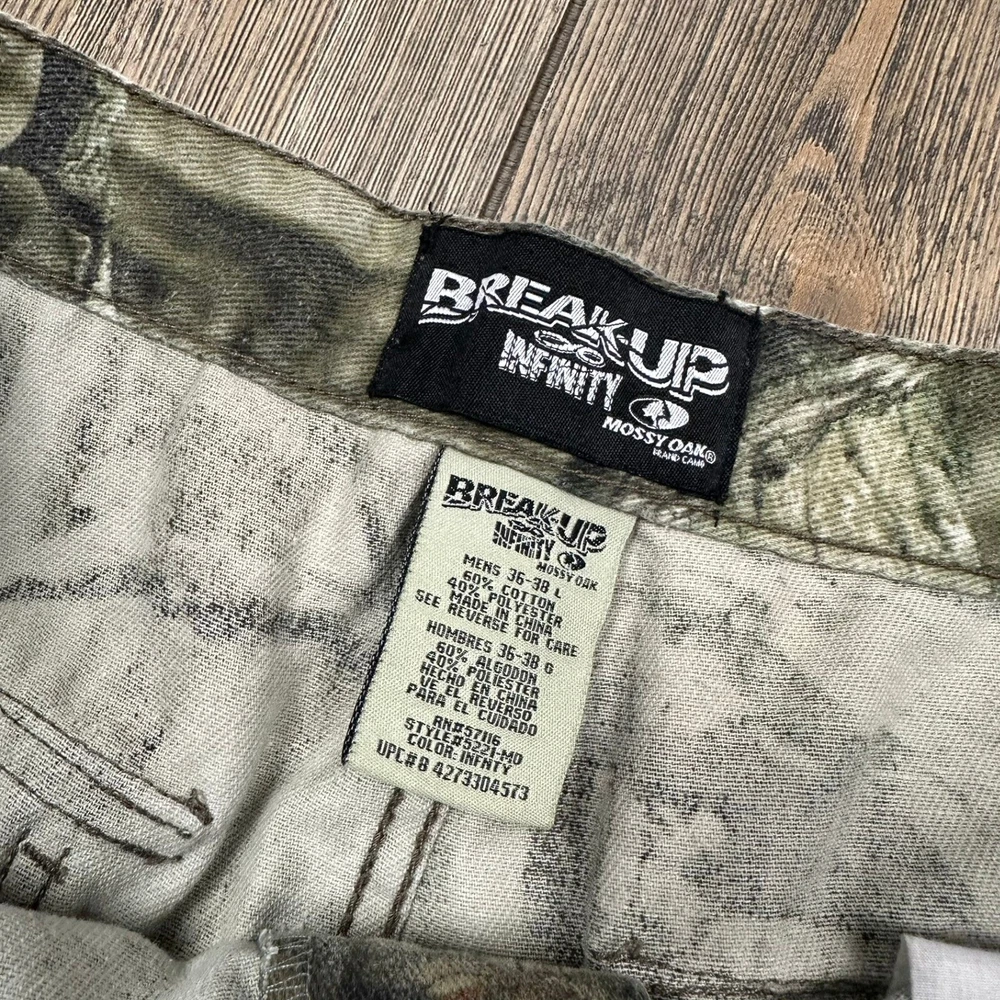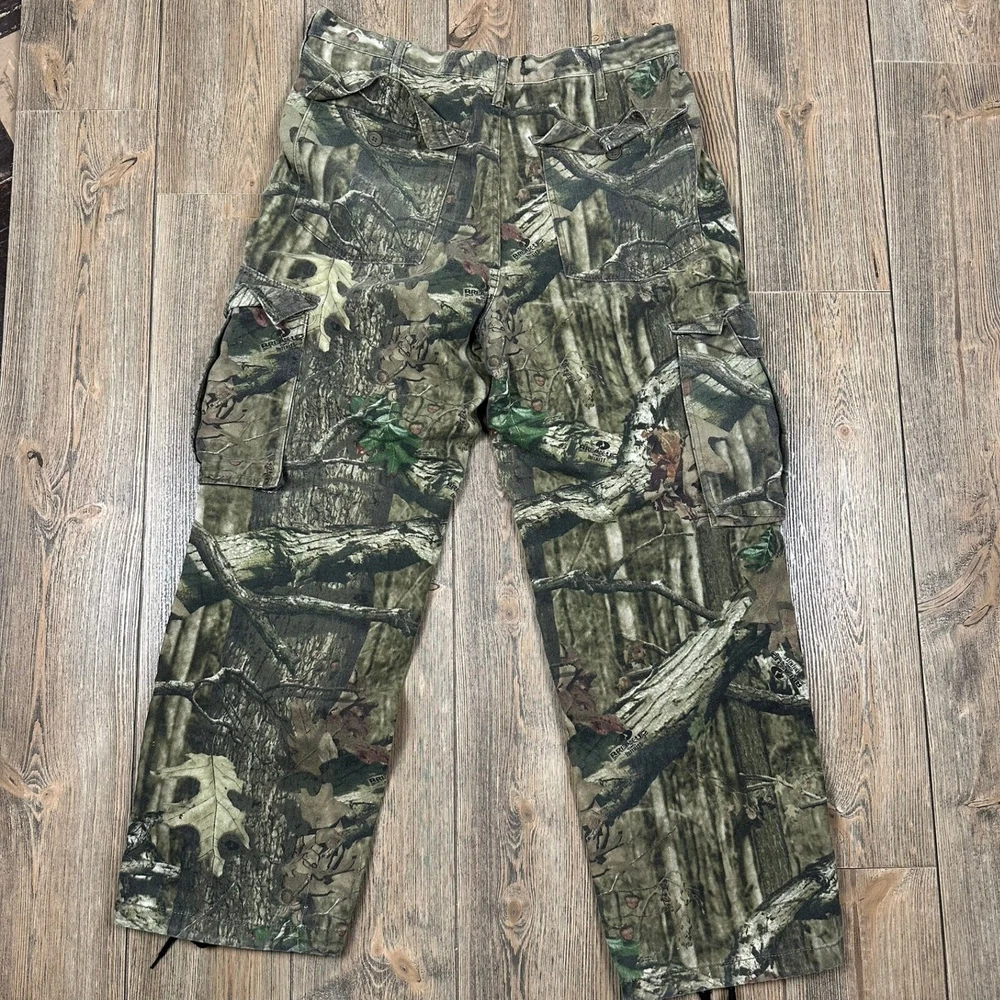 Mossy Oak Break-Up Infinity Camo Cargo Pants Drawstring Hunting 36-38 L. Good used condition! Measures 37x31 Embrace the call of the wild with these rugged camo cargo pants, designed for both adventure and everyday wear. A symphony of earth tones and intricate patterns creates a visually striking camouflage, perfect for blending into natural surroundings. The relaxed fit and durable construction ensure comfort and longevity, while the multiple cargo pockets offer ample storage for all your essentials. These pants are finished with adjustable drawstring hems, allowing for a customized fit and added versatility. Ideal for hiking through dense forests, camping under the stars, or simply adding an outdoorsy edge to your casual wardrobe.