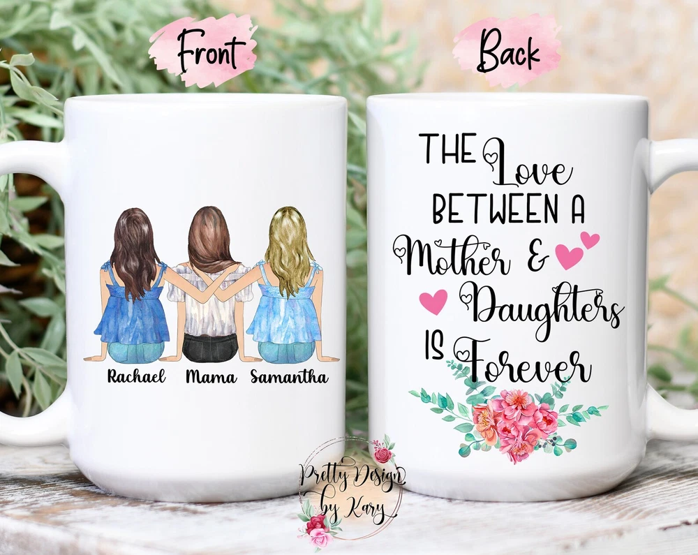 Mother And Daughters Mug Mom Coffee Mug Personalized Mom Mug Gift For Mom From Daughter Mothers Day Gift Mother Daughter Gift Product Details.. This high quality 11oz. ceramic white mug has a premium hard coat that provides crisp and vibrant color reproduction sure to last for years. Perfect for all hot & cold beverages. The highest quality printing possible is used. It will never fade no matter how many times you wash it. Material: 100% Ceramic. Print both sides. Dishwasher and Microwave Safe. High Gloss + Premium White Finish. Printed in the U.S.A. Personalized & Custom. We support personalized and custom mug to add custom, when placing an order, you can add notes to the "order note" in shipping address section. Also you can contact us directly via message. Shipping Info. Ready to ship in 1 to 2 business days, All products are made-to-order and proudly printed in the United States. Shipped by USPS and DHL, You will receive your order in 5-7 days. Replace & Refund. All products are defective during shipping broken, chipped will be replaced free of charge. You are not satisfied with the product, we will refund 100% money to you. If any other issues arise, please do not hesitate to message, we would be more than happy to assist you.