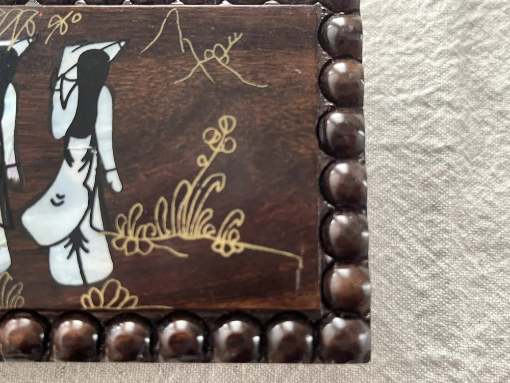 Mother of Pearl Wood Jewelry Box Keepsake Trinket Inlay Case