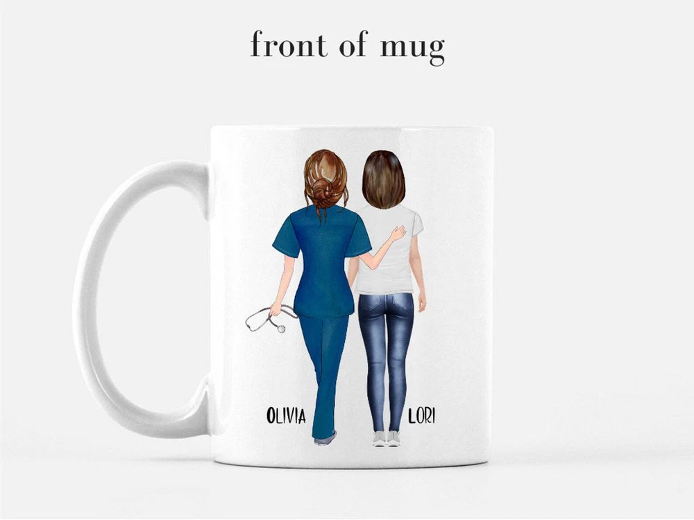Mother's Day Gift From Daughter Nurse Mom Mug Nurse Mother Gift Personalized Product Details.. This high quality 11oz. ceramic white mug has a premium hard coat that provides crisp and vibrant color reproduction sure to last for years. Perfect for all hot & cold beverages. The highest quality printing possible is used. It will never fade no matter how many times you wash it. Material: 100% Ceramic. Print both sides. Dishwasher and Microwave Safe. High Gloss + Premium White Finish. Printed in the U.S.A. Personalized & Custom. We support personalized and custom mug to add custom, when placing an order, you can add notes to the "order note" in shipping address section. Also you can contact us directly via message. Shipping Info. Ready to ship in 1 to 2 business days, All products are made-to-order and proudly printed in the United States. Shipped by USPS and DHL, You will receive your order in 5-7 days. Replace & Refund. All products are defective during shipping broken, chipped will be replaced free of charge. You are not satisfied with the product, we will refund 100% money to you. If any other issues arise, please do not hesitate to message, we would be more than happy to assist you.