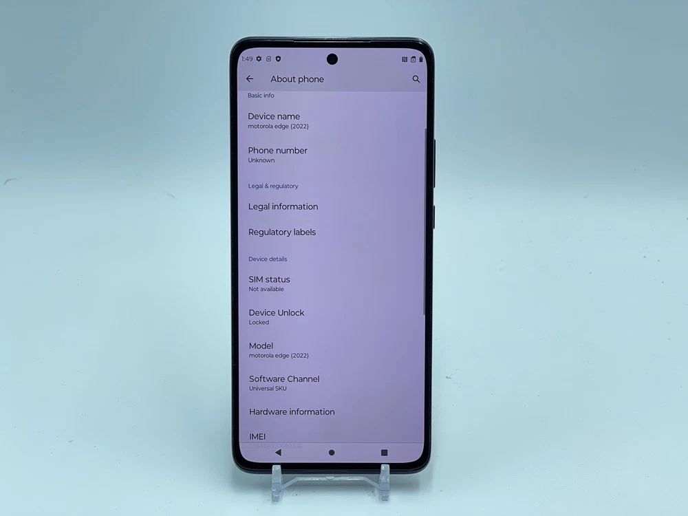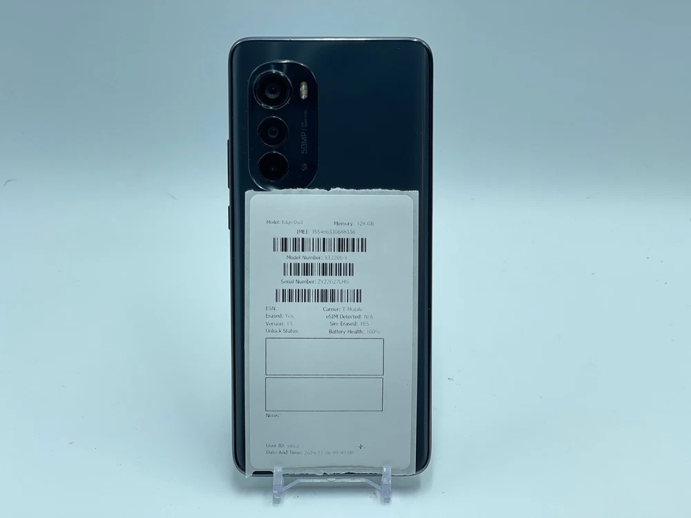 PAYMENT - Payment is due when item is ended. If payment is not received within 4 DAYS , the order will be automatically cancelled resulting in a strike on buyer's account. Buyers with 2 or more unpaid items will no longer be able to make offers or purchases from Warehouse Wireless. RETURNS - Returns are accepted within 60 days of purchase. We do not offer replacements or partial refunds. Original purchase price will be refunded after receipt of return. SHIPPING - USPS requires all electronics with lithium batteries be shipped using Parcel Select. Shipping times vary depending on location and are estimates only. Unfortunately, we are unable to offer USPS Priority, USPS Express, or FedEx Express shipping options. Motorola Edge 128GB XT2205-1 (T-Mobile) Blue Firmware: Android 13.0 - T2STS33.105-51-11-1 THE PHOTOS ABOVE ARE OF THE ACTUAL DEVICE NOT STOCK PHOTOS. This item does not include a charger or any other accessories CARRIER - T-Mobile IMEI/ESN - 355486330688336 Device is CLEAR FOR ACTIVATION - Please contact us right away if you do experience any problems with activation. DESCRIPTION - This item is in FAIR cosmetic condition. It reflects MODERATE to HEAVY USE and has MANY scratches and/or blemishes. Functional Condition Test Results: Passed Accelerometer Bluetooth Device Lock Digitizer Earpiece Flashlight Front Camera Front Camera Quality Glass Condition Gyroscope LCD Loud Speaker M-Network Connectivity M-Sim Reader Test Microphone Power Button Proximity Sensor Rear Camera Rear Camera Quality Screen Rotation Telephoto Camera Telephoto Camera Quality UltraWide Camera UltraWide Camera Quality Vibration Video Microphone Volume Down Button Volume Up Button WiFi+GPS