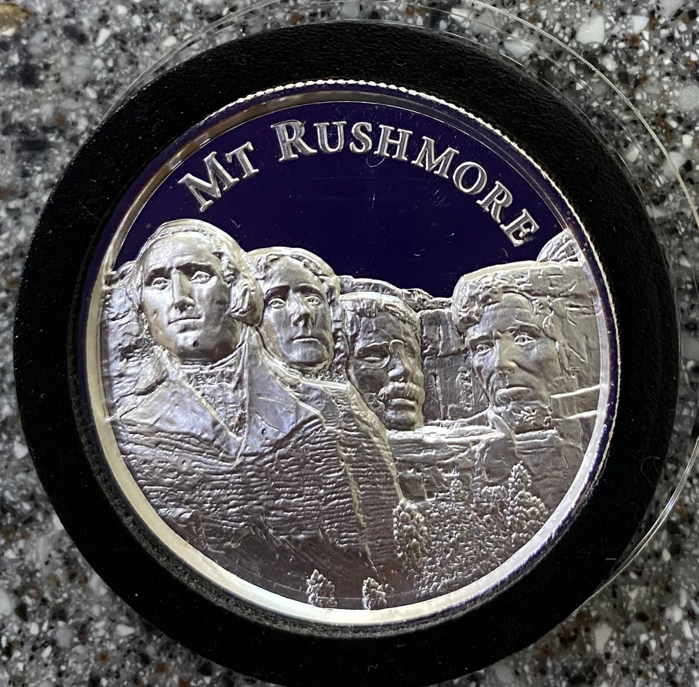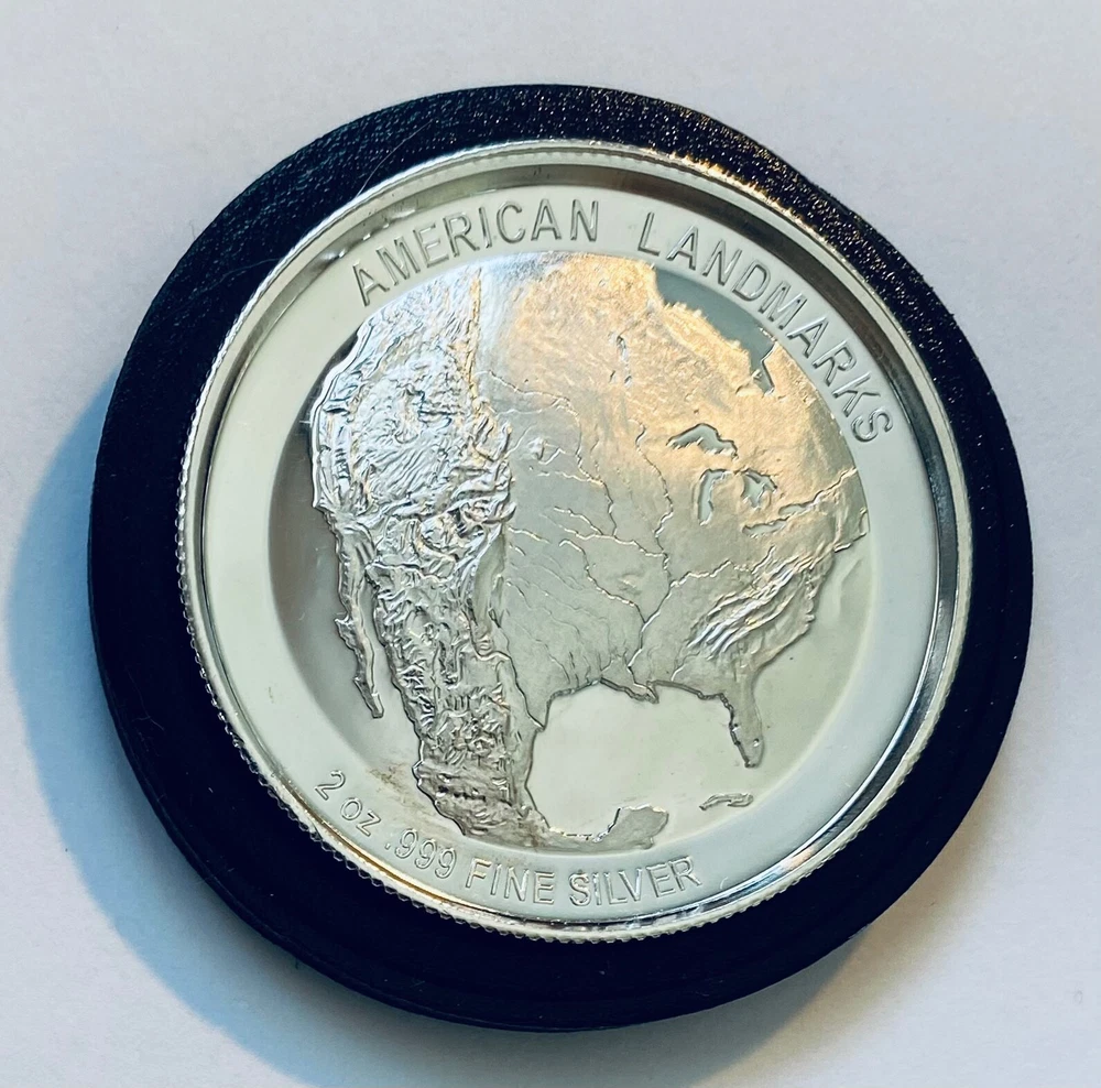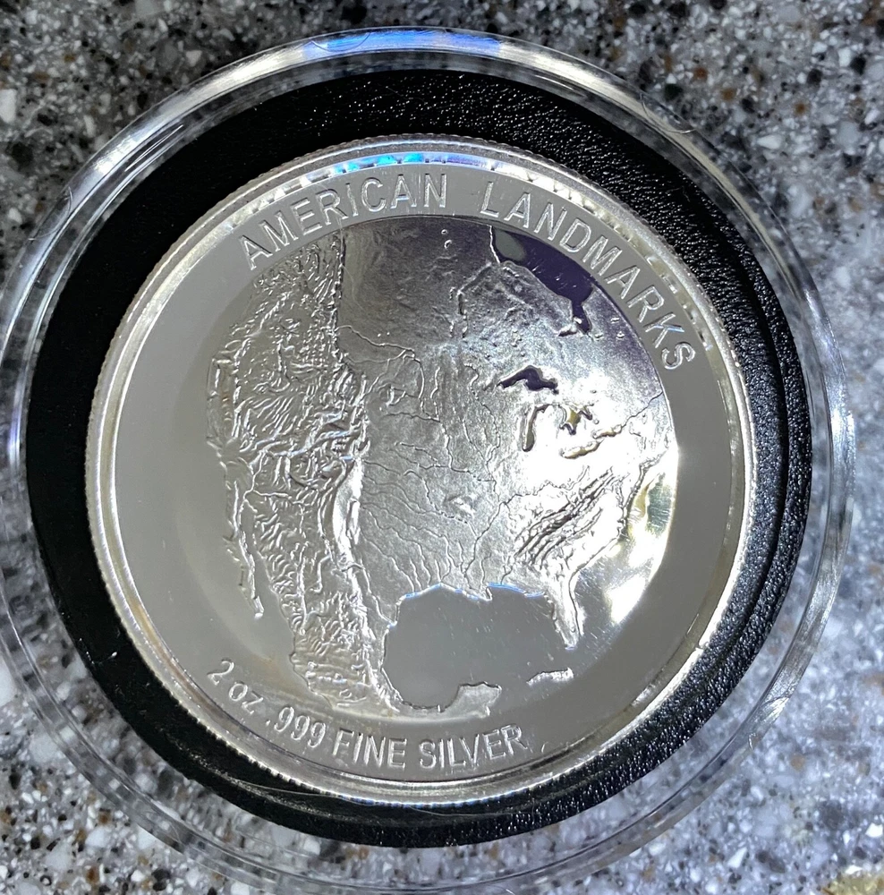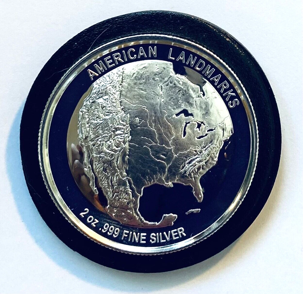 "THIS LISTING IS FOR THE SILVER ROUND SHOWN AND IS THE SILVER ROUND YOU WILL RECEIVE" Mount Rushmore American Landmarks 2 oz .999 Fine Silver ~ Ultra High Relief 2 OZ ,999 ROUND ROUND HAS SMALL SCRATCH AT TOP OF OBVERSE SIDE PLEASE, SEE PICS TO INSPECT ROUND IS IN A PLASTIC ROUND WITH BLACK BORDER SHIPPING IS $3.99 AND I PAY THE REST … "A BEAUTIFUL COIN FROM AN HONEST SELLER" QUESTIONS ? PLEASE ASK … +++ I Always leave positive Feedback after receiving Feedback from the You +++ CHECK OUT MY STORE FOR MORE COINS ! "TD SILVER COINS ETC" THANKS FOR STOPPING BY...