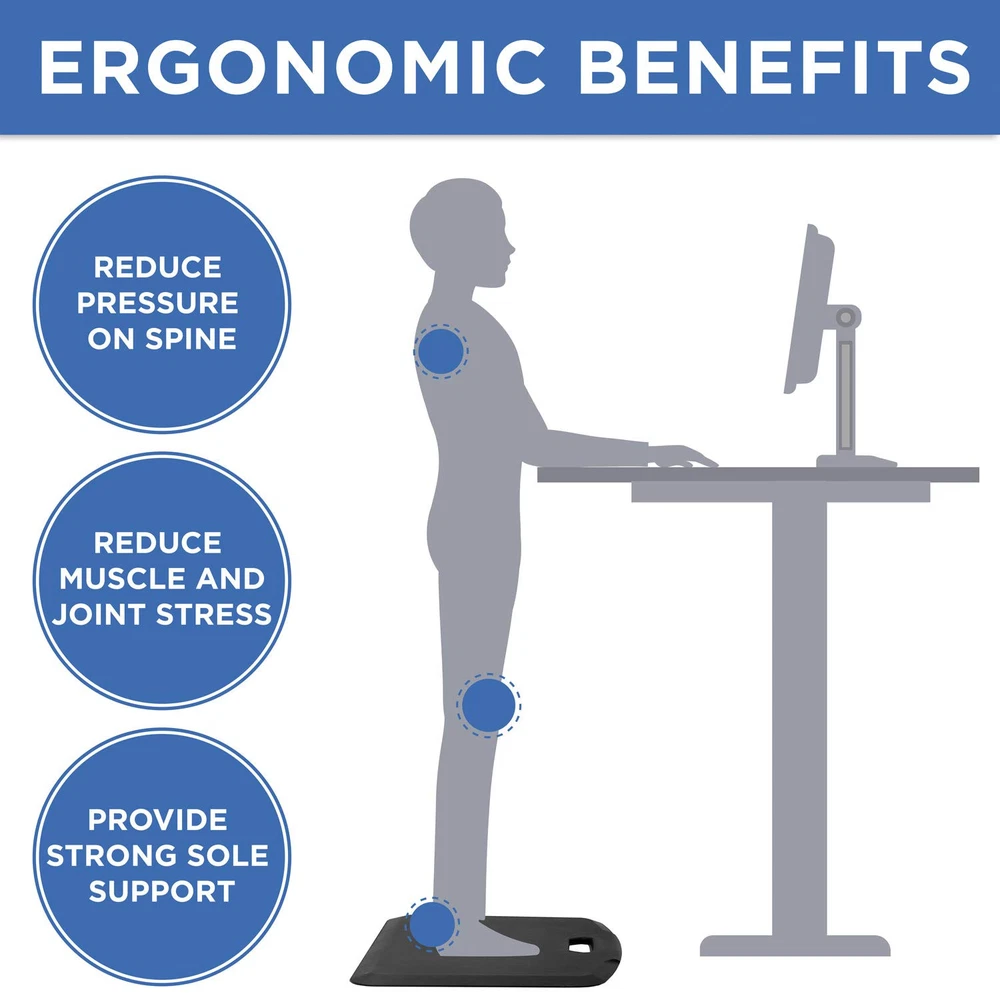 ANTI FATIGUE MAT: This ergonomic mats for standing provides cushioned support for your knees and feet for long periods of standing. Relieving pressure in your legs can help reduce lower back pain. MULTI-USE COMFORT MAT: A versatile stand up mat great for the kitchen, garage, standing desk workspace, salon or anywhere you are on your feet a lot. This small gel standing pad is the simple and effective way to improve workplace comfort! This small mat for standing desk pairs great with your stand up desk workstation. STANDING DESK FLOOR MAT: This rubber standing pad features beveled edges and an anti-slip top and bottom for safety. Features anti fatigue mats with carry handle for easier portability. EASY TO CLEAN: This gel mat for standing desk is made to withstand heavy use. The rubberized gel foam is water resistant and can be vacuumed or wiped with a damp cloth. This portable standing mat is also stain resistant and easy to maintain. THE MOUNT-IT! PROMISE OF EXCELLENCE: Designed and built with high-quality materials and innovative designs. Reach out to our friendly and responsive US-based customer support team to answer any questions you may have during normal business hours.